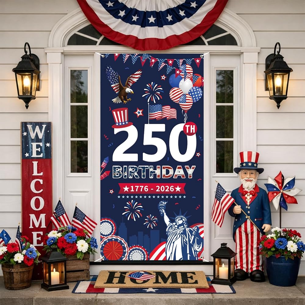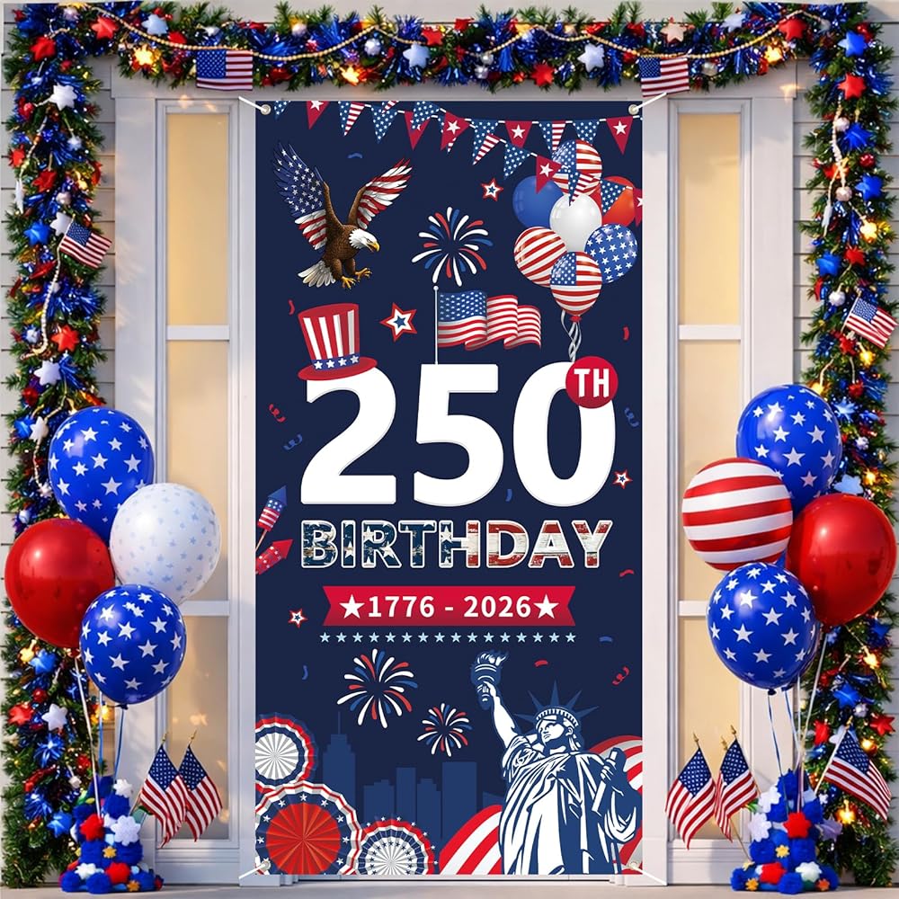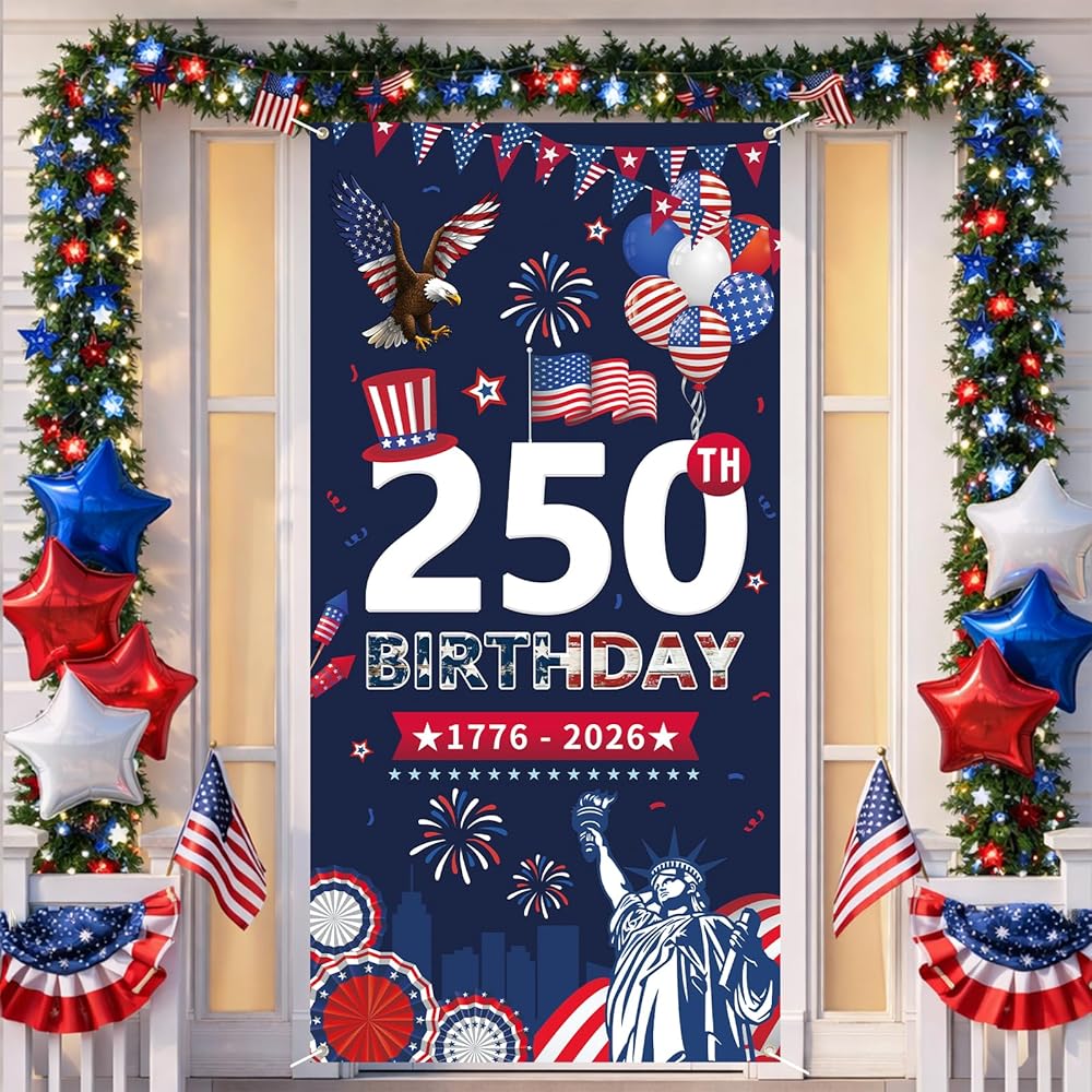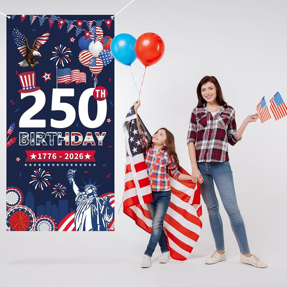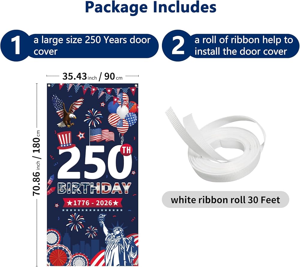 [Wide application]: This door cover is a great addition for 250th anniversary door decorations and party supplies. It can be used to decorate your door, or hang it on the wall as a background for photo booths, or wherever you like.
