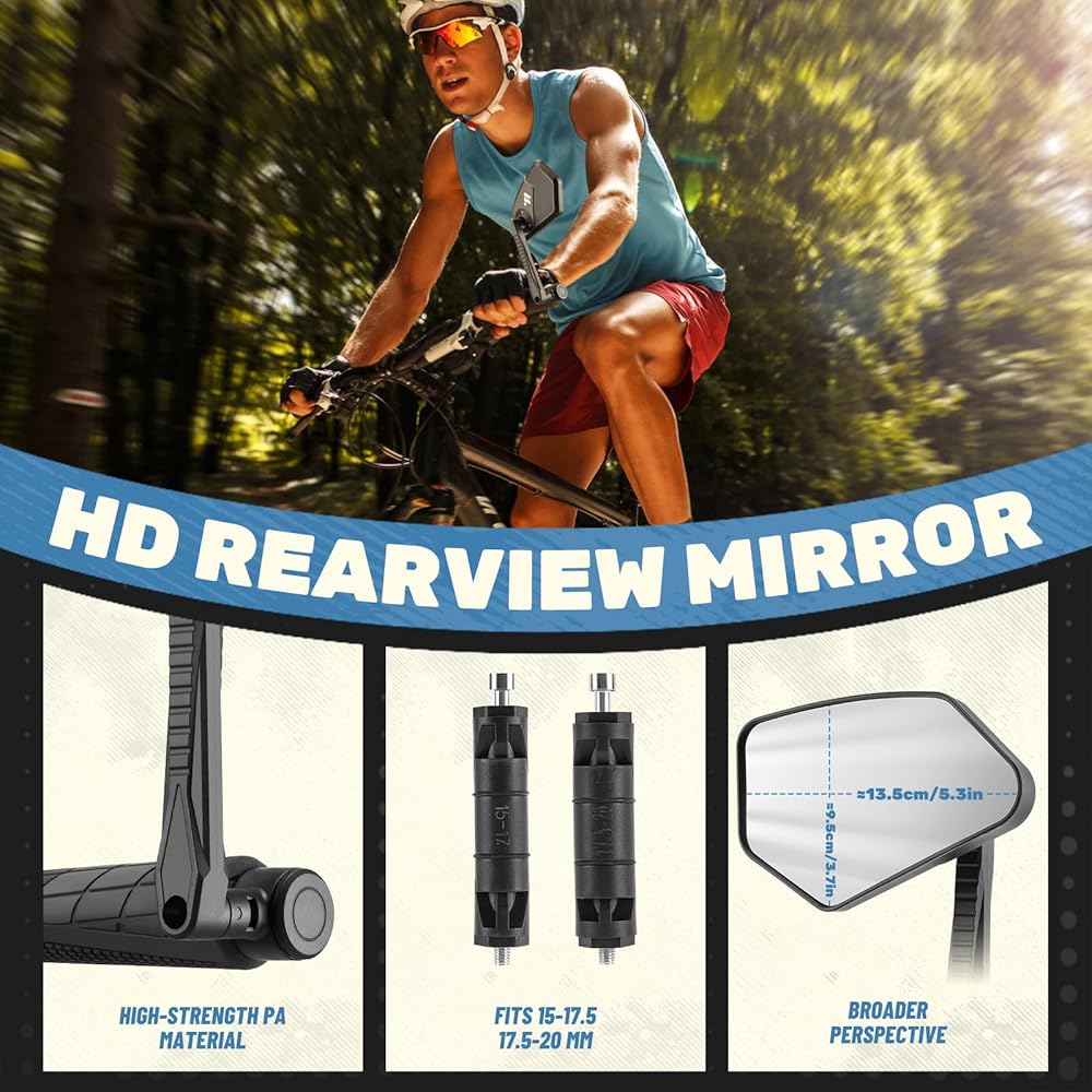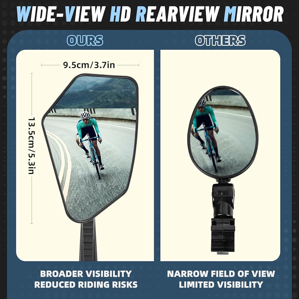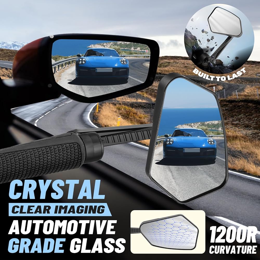 • زجاج عالي الدقة بدرجة السيارة وعرض واسع - مرآة كبيرة جدًا (5.1 × 3.3 بوصة) مع زجاج من فئة السيارات توفر صورًا واقعية. يعمل مجال الرؤية الواسع هذا على تقليل البقع العمياء، مما يقلل بشكل فعال من مخاطر الركوب أثناء تنقلاتك اليومية أو رحلات عطلة نهاية الأسبوع.
