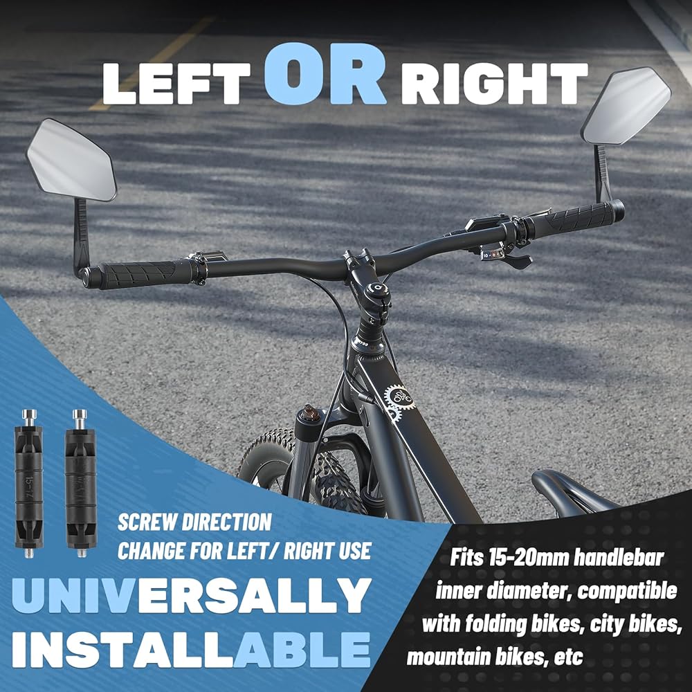 مرآة رؤية خلفية للدراجة قابلة للطي بزاوية 360 درجة وقابلة للتعديل تناسب القطر الداخلي 15-20 مم، لسكوتر الدراجة الإلكترونية على الطرق الجبلية للبالغين (عالمية لليسار واليمين)
