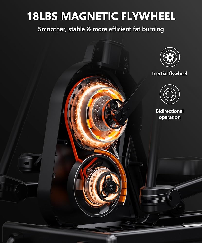 【18LBS Flywheel for Commercial-Grade Smoothness】Experience commercial-grade stability with our precision-balanced 18LBS perimeter-weighted flywheel. This heavy-duty component generates powerful kinetic inertia, eliminating the jerky, stop-start motion found in lightweight machines. The result is a buttery-smooth, continuous stride that mimics natural running without impact—delivering the premium feel of a club-quality elliptical training machine right in your home gym