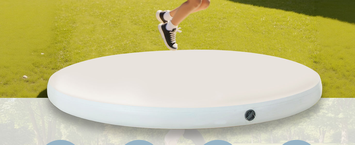 هيكل متين: بساط الهواء للجمباز مصنوع من نسيج 1000D وبولي كلوريد الفينيل متعدد الطبقات، مما يتحمل التأثير اليومي. يقلل السطح المضاد للانزلاق من الانزلاق الناتج عن العرق، مما يزيد الثقة أثناء التمارين، ويمكن استخدامه على الماء