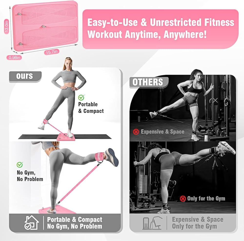 درجة احترافية، أكثر فعالية: يخلق مرساة لوحة اللياقة البدنية الثابتة مسار مقاومة ثابتًا ومتماسكًا لا يمكن أن تتطابق مع الأربطة الحرة، مما يحافظ على التوتر ثابتًا لتدريب أسرع وأكثر فعالية أثناء الركلات ذات الساق الواحدة وملحقات الورك. تم تصميمه كمعدات أساسية لتمرين المؤخرة للنساء، فهو يساعد المستخدمين على الحفاظ على الشكل المناسب، والتدريب بثقة، وتنشيط الأرداف بشكل أسرع مع كل تكرار.