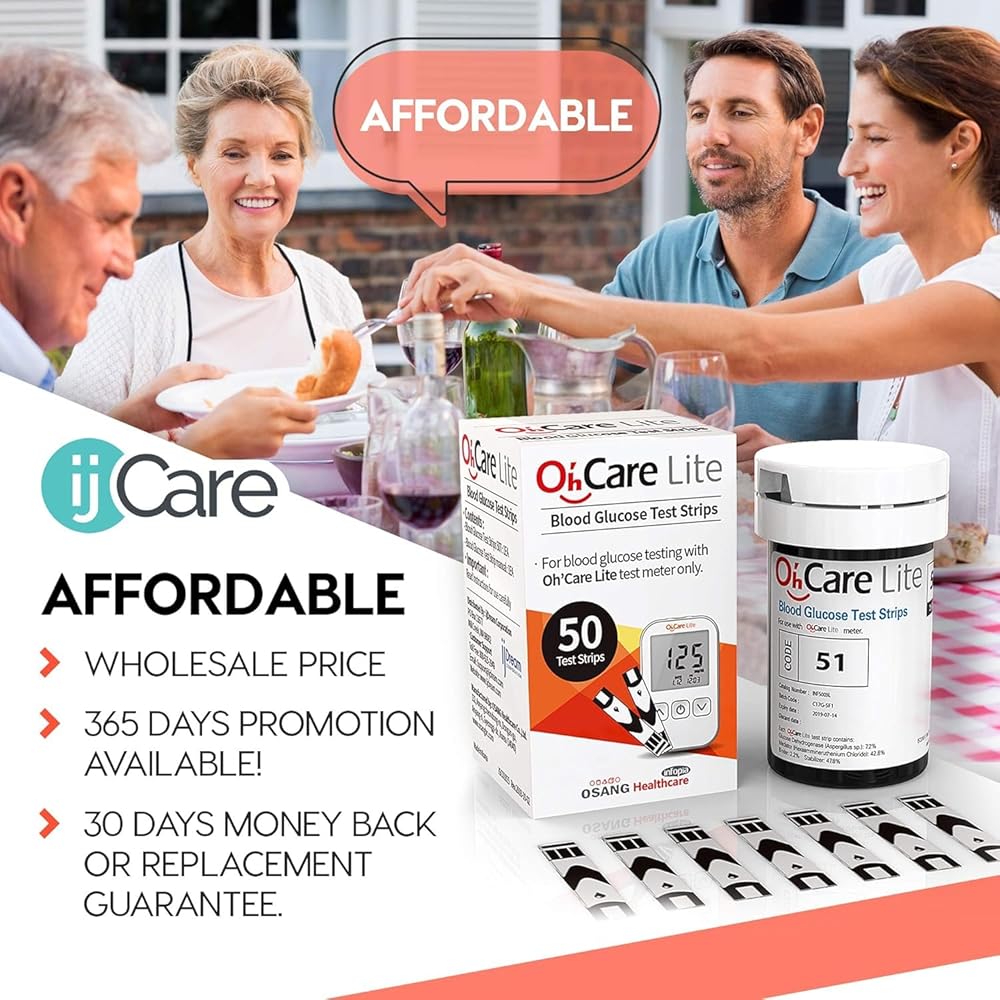 You might agree when it comes to glucose meters, we want it all - fast, compact, memory, easy and affordable with accurate results. So, you might also agree then, the ijCare Test Kit is what you wanted all along. It's OK Not To Take The ijCare Glucose Test Kit Home Today... ... But when you DO decide to take it home, you'll have the satisfaction of knowing exactly what your blood glucose is doing, without wondering if you're seeing inaccurate results. Because for starters, we strictly adhere to ISO-15197:2013, the International Standard for the Blood Glucose Monitor Kit. This is your assurance of our manufacturing quality. Secondly, our strips have been tested in three (3) labs against the YSI 2300 Auto Analyzer. And they've passed clinical trials in International hospitals. So Now You Know It's Good, Lets See What's Inside: Oh'Care Lite Meter with Auto-Eject Strip Function (81 x 52mm) 50x Oh'Care Lite Strips featuring the latest Biosensor Technology Lancing Device with Five (5) Depth Settings, and Auto-Eject Function 50x ijCare Lancets (Less Pain) Logbook to track results 3V Batteries Included Luxury Faux-leather Carry Case Manuals for all components PLUS Video Walkthrough 3-Year Warranty on Meter 30-Day Money Back Guarantee It's Everything You Wanted, Isn't It? But in case you wanted more, you'll love knowing your lite meter features Auto-Coding, a reminder alarm, averages calculation, and a test memory of 365 results, And best of all, all consumables (strips etc.) are affordable too! So, we've seen how accurate the ijCare Glucose Test Kit is, and we've shown you how much value is packed inside, so now you're ready to try it yourself and Order Now.
