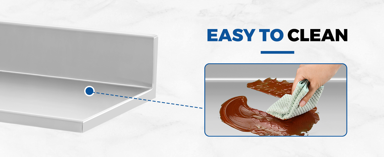 • مصممة لتحمل الاستخدام الثقيل: تم تصميم هذه الأرفف المصنوعة من الفولاذ المقاوم للصدأ بزوايا ملحومة معززة وأقواس مخفية للتعامل مع الأحمال الثقيلة الثابتة والبيئات التجارية ذات حركة المرور العالية. مثالية للمطابخ والحانات والفنادق المزدحمة، فهي تبقى مثبتة بشكل آمن مع ضمان السلامة والمتانة طويلة الأمد