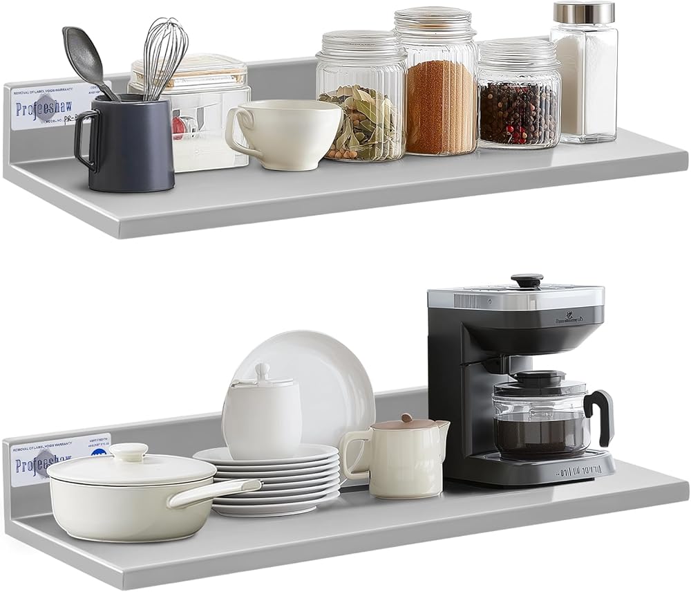 Profeshow الفولاذ المقاوم للصدأ الجرف الحائط التجاري رفوف الفولاذ المقاوم للصدأ 8.6 * 30 بوصة 58lb الثقيلة رف المطبخ التجاري لمطعم، بار، غرفة المرافق، المطبخ والمرآب in Kuwait