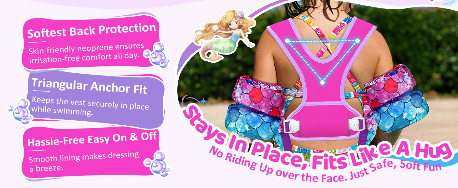 • لا يسبب الاحتكاك، فقط الراحة: لقد صممنا نظام راحة 360 درجة للبشرة الحساسة للأولاد والبنات. تتميز سترة السباحة للأطفال الصغار برقبة واسعة على شكل حرف U لمنع احتكاك الذقن، وإبزيم مخفي بالكامل داخل القماش لحماية الظهر، وحزام واسع ومبطن بين الرجلين ملفوف بالنيوبرين الناعم. لا مزيد من العلامات الحمراء أو الشكاوى، فقط ساعات من السباحة السعيدة.
