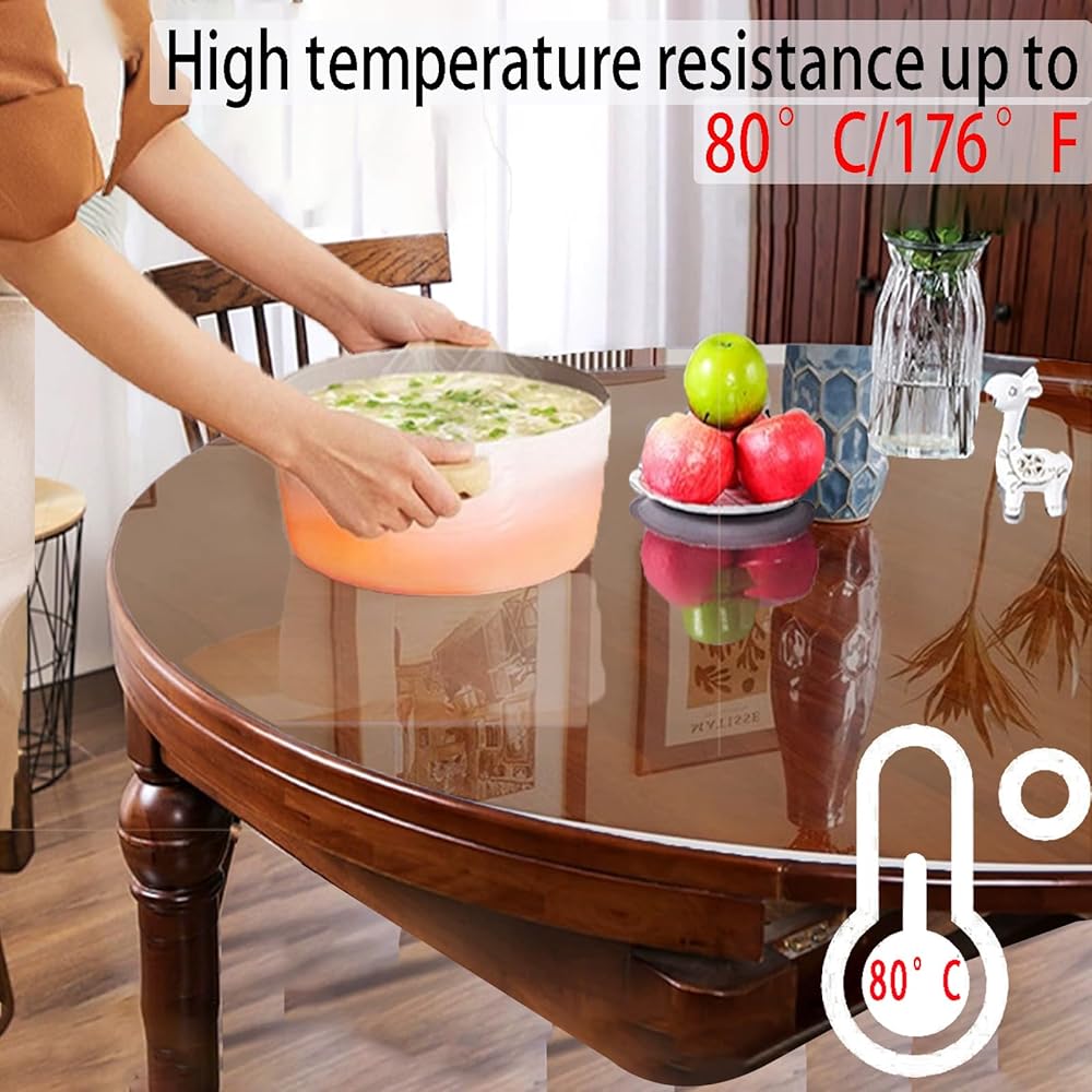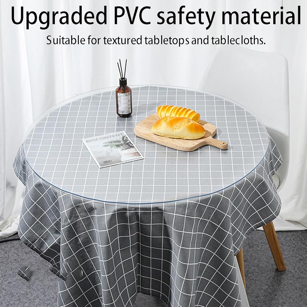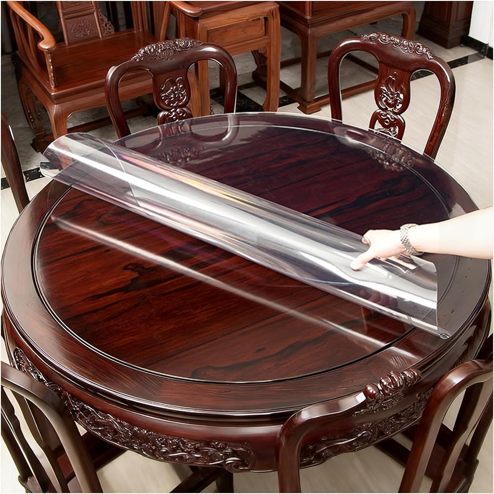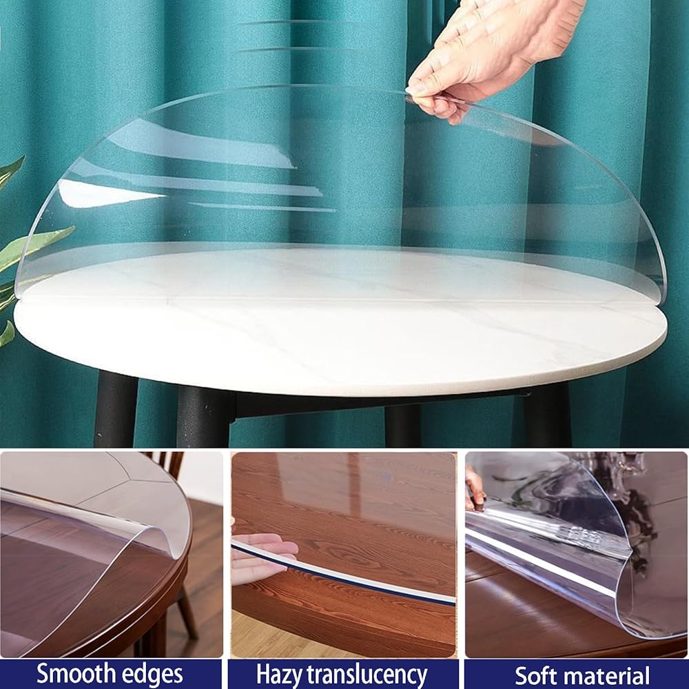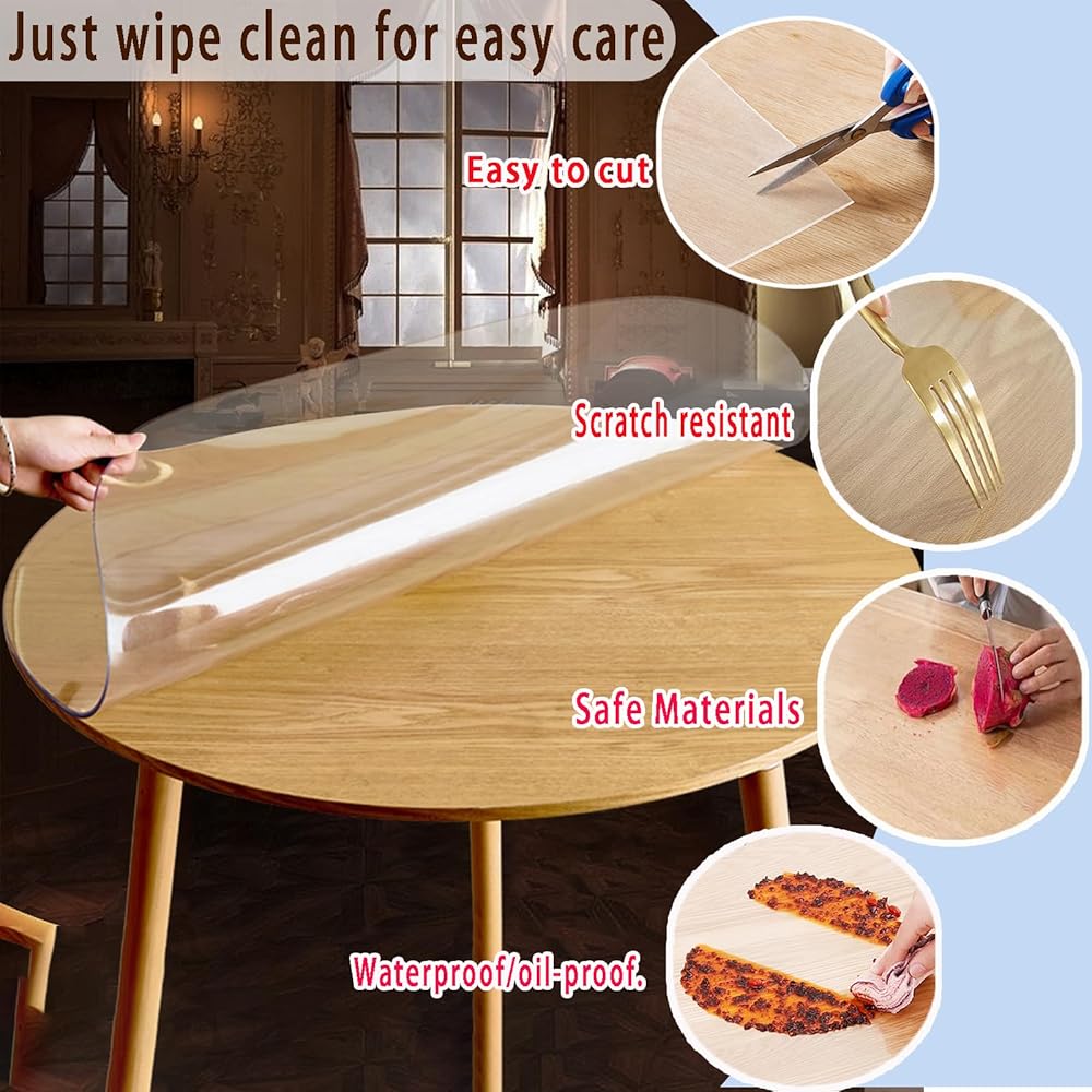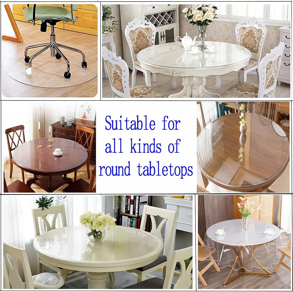 【BEST PROTECTION】 round clear table cover protector not only protect your table tops, tablecloths and expensive furniture from scratches, spills, nicks, oil stains, scalds.our crystal clear, scratch-resistant table protector,It can also show the delicacy of your table and provide protection for ancient and precious furniture.