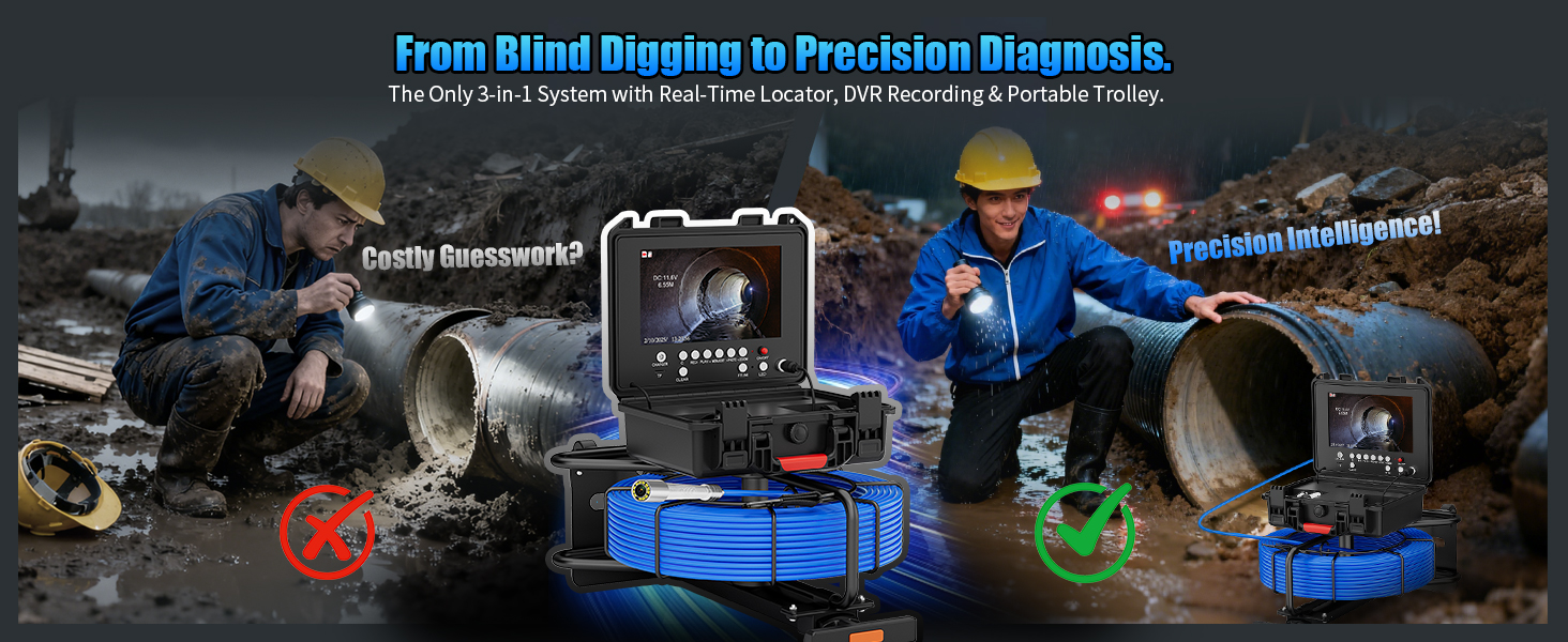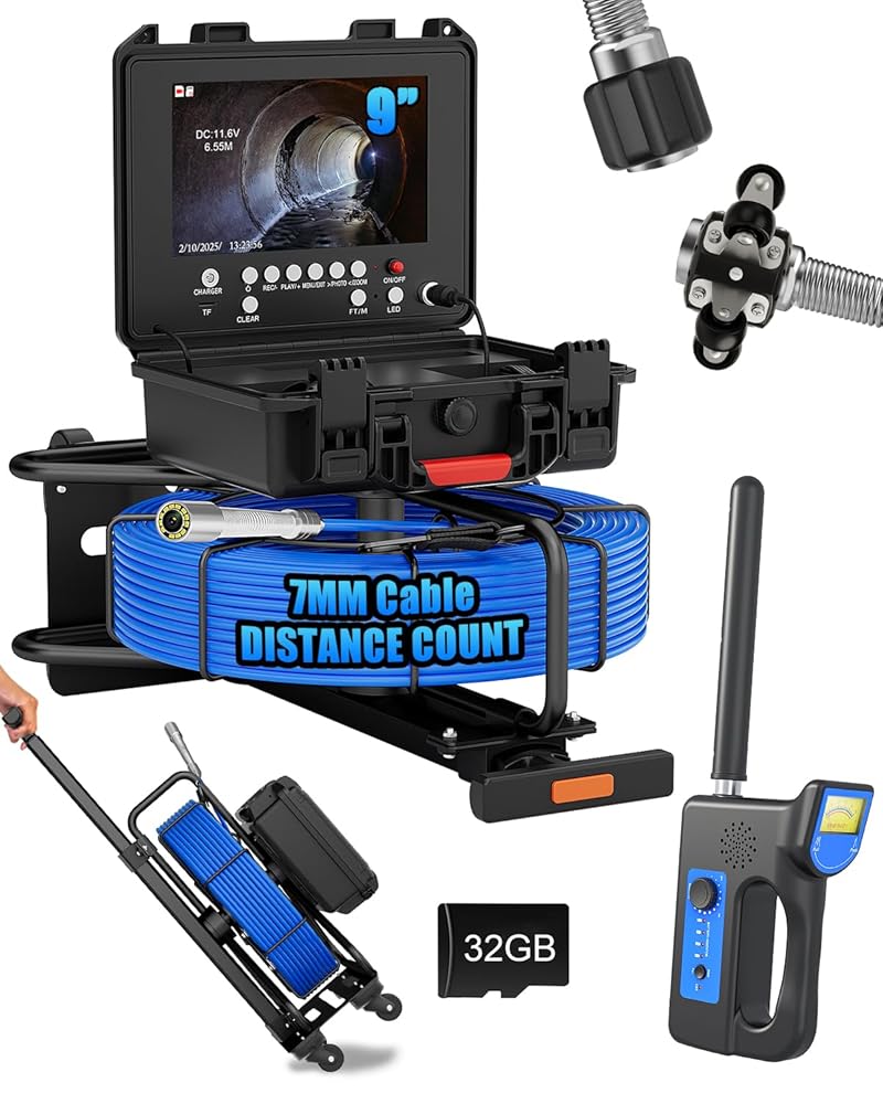 🔍【كاميرا فحص المجاري الكل في واحد مع محدد الموقع والعربة】 يأتي نظام كاميرا فحص المجاري الاحترافي هذا كاملاً مع محدد موقع الأنابيب 512 هرتز وعربة سحب محمولة. يتم تضمين كل ما تحتاجه لفحص الصرف وخطوط الأنابيب - لا يلزم إجراء عمليات شراء إضافية. العربة المدمجة تجعل نقل الكابل بطول 50 مترًا سهلاً إلى أي موقع عمل.