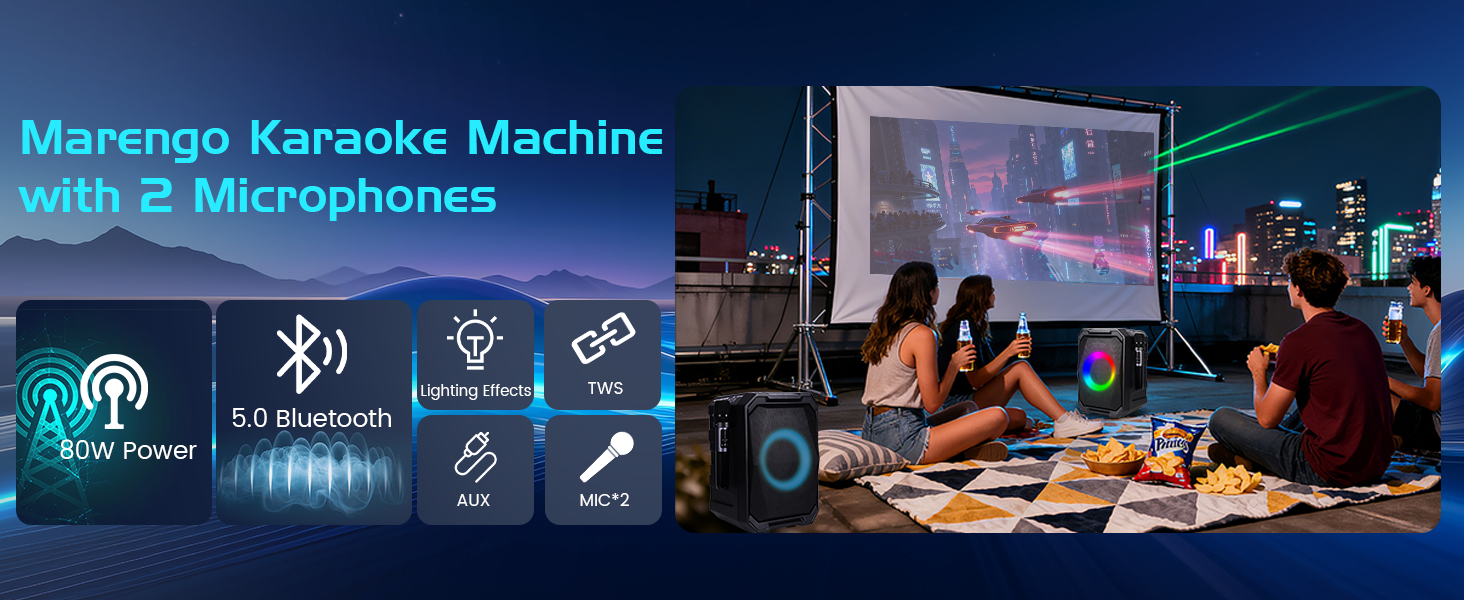【آلة كاريوكي الكل في واحد مع 2 ميكروفونات لاسلكية】تتضمن 2 ميكروفونات لاسلكية UHF قابلة لإعادة الشحن مع نطاق لاسلكي ثابت يصل إلى 50 مترًا (164 قدمًا). مثالي للكاريوكي والخطابات واستضافة الأحداث والحفلات دون القلق بشأن الكابلات.