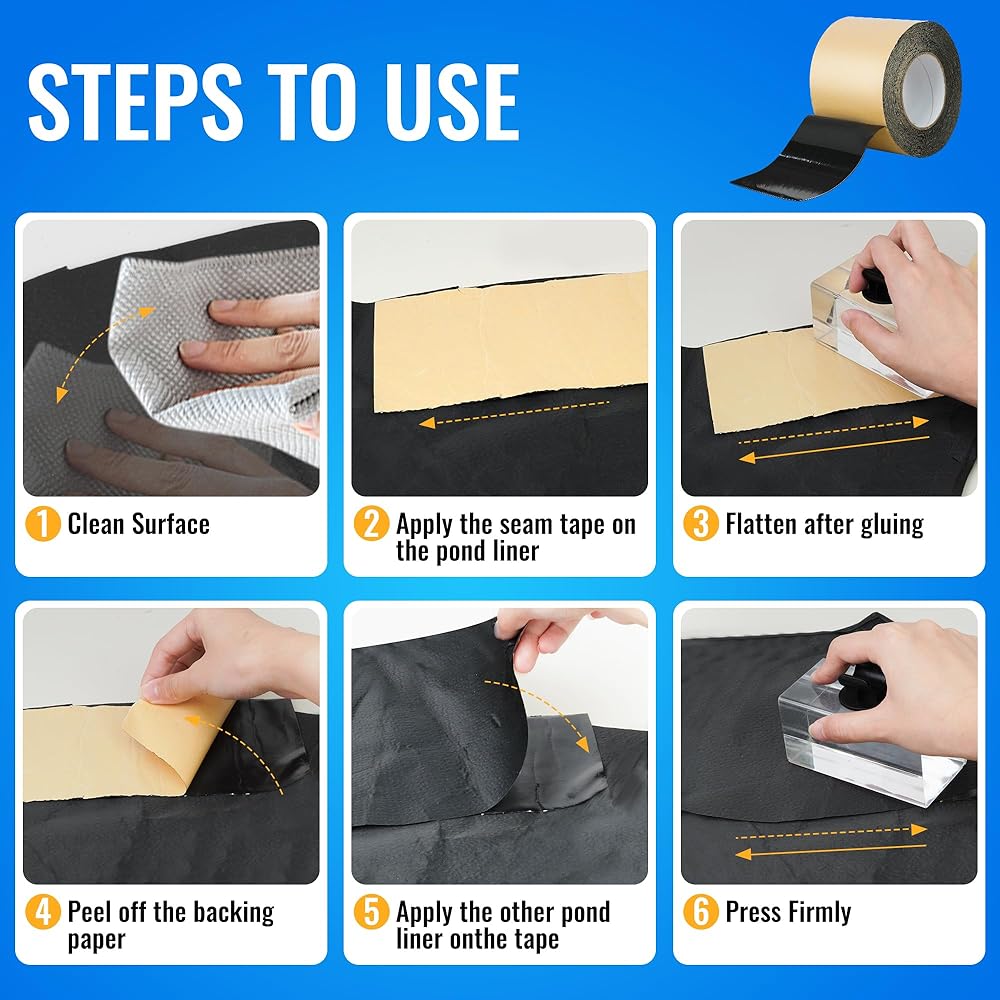 【التصاق بوتيل قوي للغاية على الوجهين】يتميز بمادة لاصقة بوتيل عالية الأداء على الوجهين والتي تخلق ختمًا مقاومًا للماء يدوم طويلاً، ويربط بقوة EPDM ومواد بطانة البركة الأخرى.