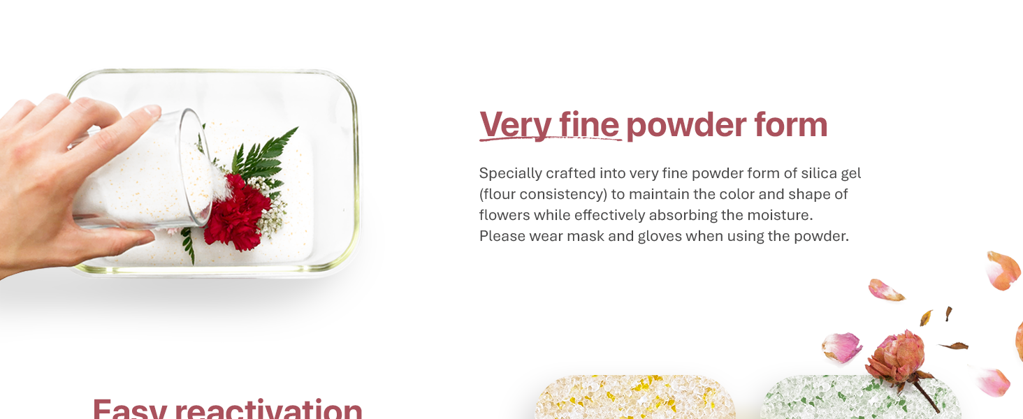 [عامل تجفيف الزهور النهائي الذي تم تطويره حديثًا] يمكن تجفيف الزهور خلال 2-5 أيام. يحافظ على الألوان الطبيعية. يحافظ على الملمس. احتفظ بذكريات أنيقة والتقط جمال الزهور الجافة مع جل السيليكا الخاص بزهرة التجفيف. تقنية السيليكا لتجفيف الزهور المطورة حديثًا، والتي تسمح للزهور بالتجفيف بشكل أسرع من الموديلات العادية.