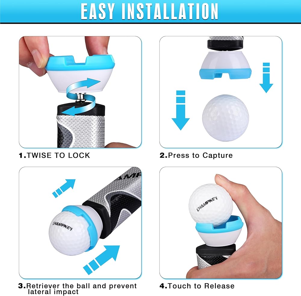 تقنية الإمساك المبتكرة: تتميز بتقنية الإمساك ذات 4 مخالب الفريدة من نوعها، حيث يلتقط ممسك كرة الجولف الكرة بسهولة، مما يسمح لك باستعادتها بسرعة من العشب أو مصائد الرمل أو مخاطر المياه. قل وداعًا للانحناء لالتقاط الكرات، وحافظ على الأناقة والراحة مع التركيز على كل أرجوحة.