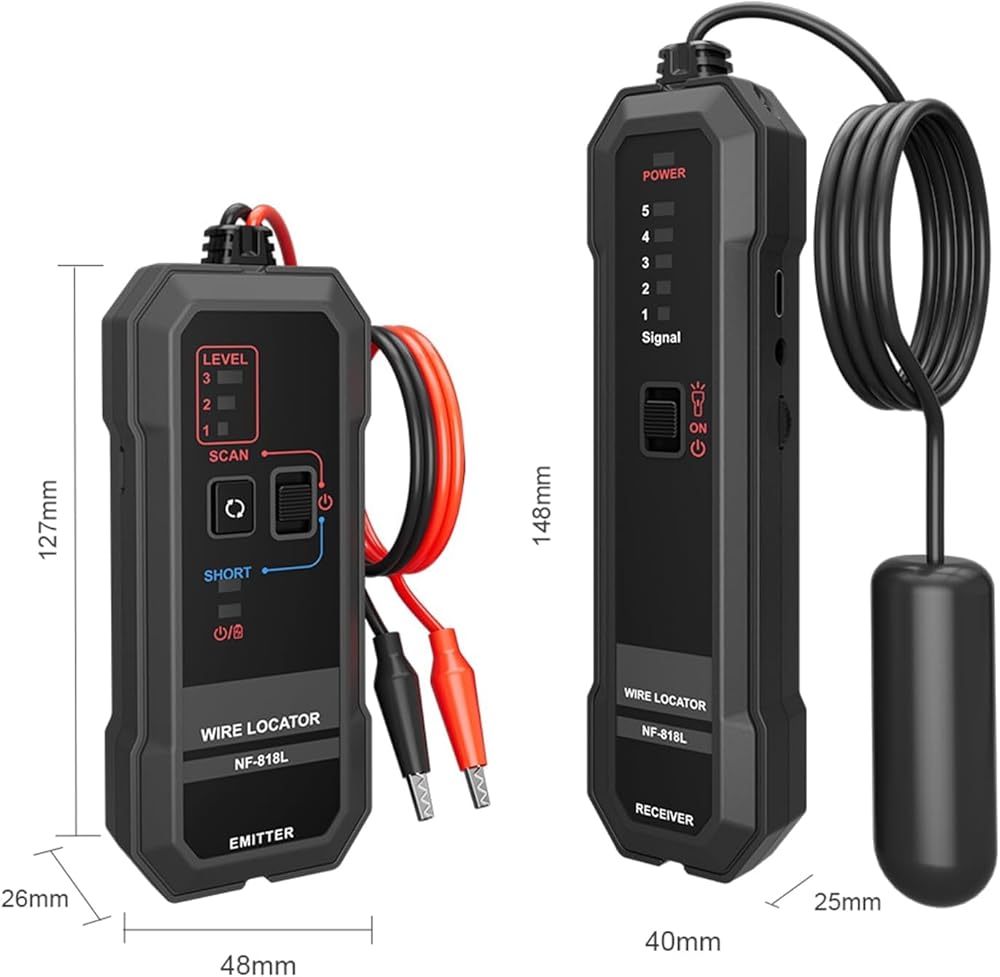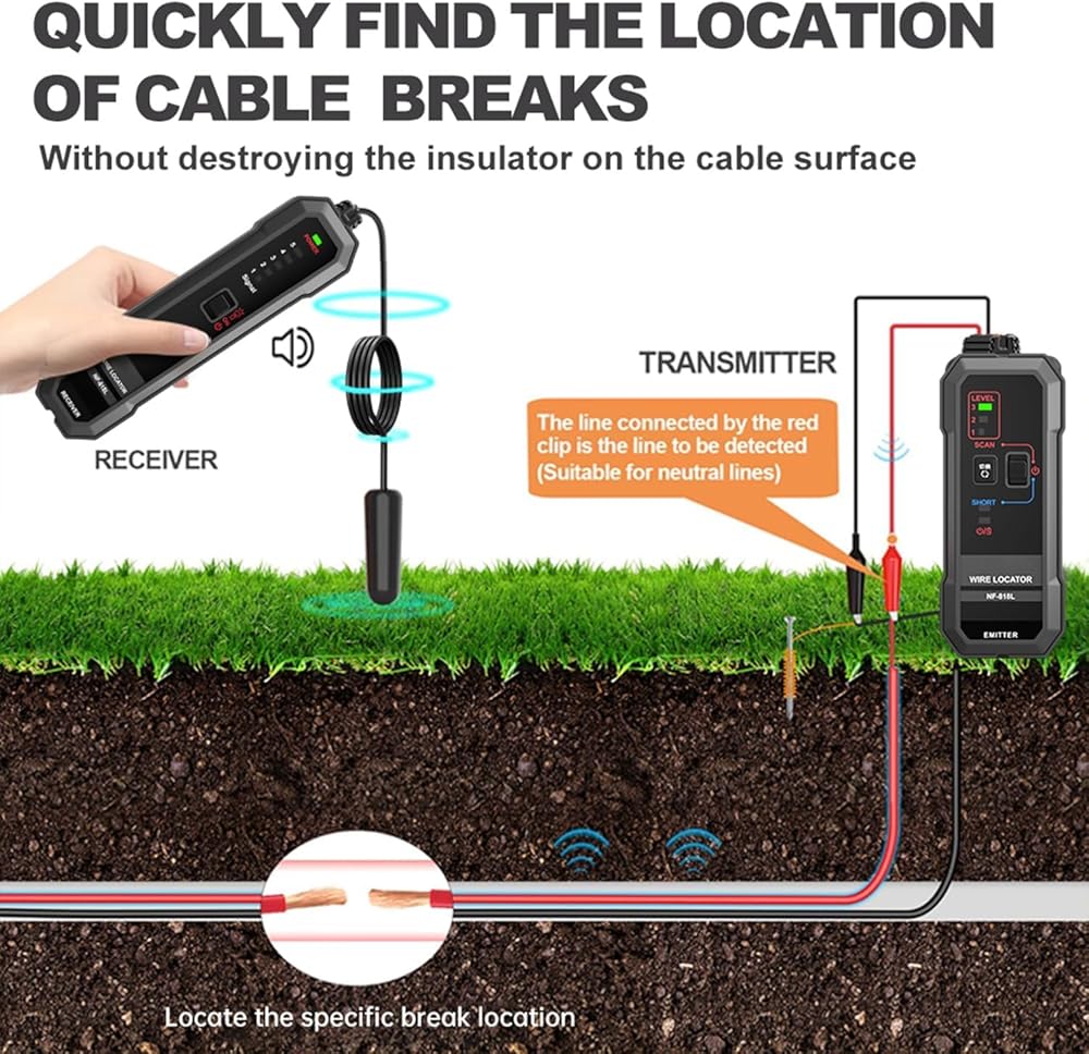 محدد موقع الأسلاك تحت الأرض المطور الجديد: يمكن أن يساعد جهاز تتبع الأسلاك تحت الأرض NF-818L في تحديد موقع وتتبع الأسلاك المدفونة والمخفية، وتحديد موقع نقطة الكسر واتجاه الكابلات تحت الأرض والكابلات عبر الجدار بسرعة ودقة. مثالي لتحديد موقع وتتبع الأسلاك المدفونة والمخفية، ومحدد موقع الكابلات، ومتتبع الأسلاك، ومحدد موقع الأسلاك المكسورة لسياج الكلاب، ومحدد موقع الأسلاك المكسورة غير المرئي، ومتعقب الأسلاك، واختبار السياج الكهربائي والمزيد