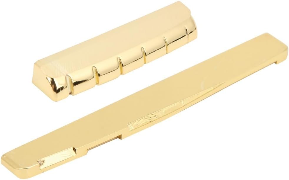 ‌This brass guitar nut and saddle set is designed to upgrade the tone and sustain of your 6-string acoustic guitar. It provides a durable alternative to standard plastic parts, enhancing vibration transfer for clearer sound projection.