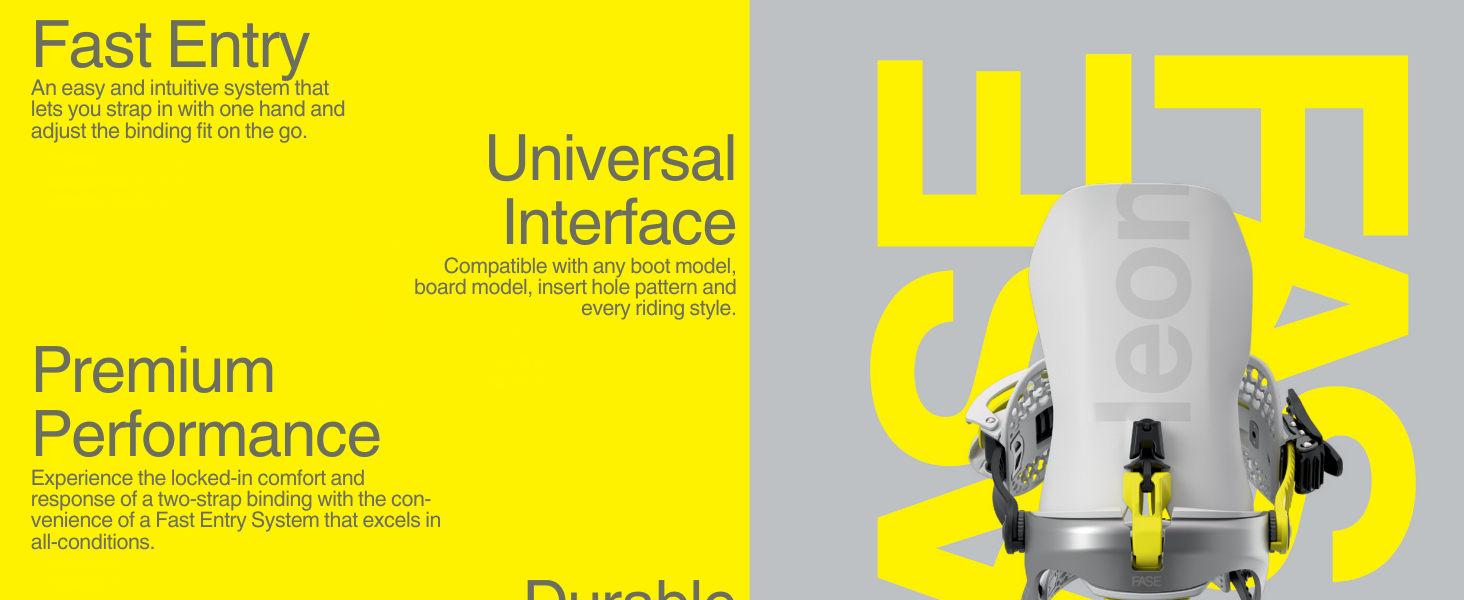 A versatile all-mountain binding designed for riders who demand precision and comfort in every turn. Featuring the innovative FASE Fast Entry System, this binding allows for effortless and intuitive strapping in, so you can seamlessly transition from the lift to the slopes. The asymmetrical lightweight aluminum frame enhances side-to-side flex, providing a dynamic ride that adapts to any terrain, from park features to backcountry adventures. With the 3D AuxTech Cradle FastStraps, you'll enjoy an exceptional locked-in fit and responsiveness.