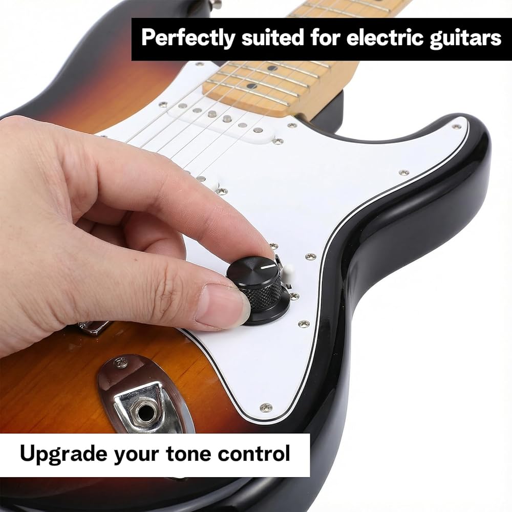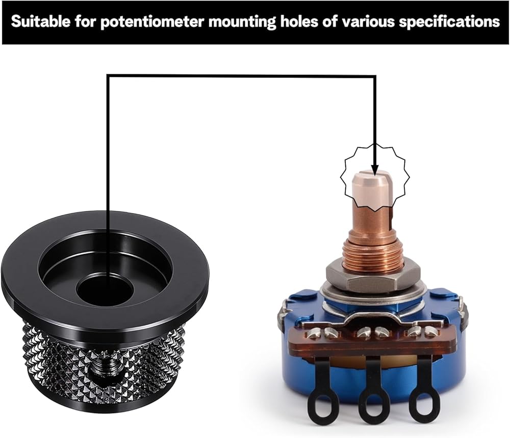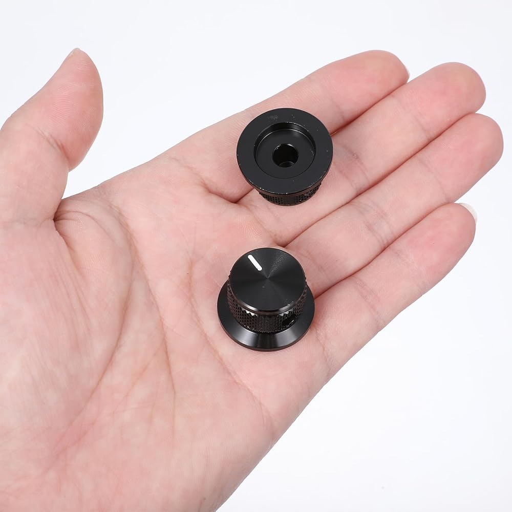 Enhance your guitar's performance with these aluminium potentiometer knobs. Perfect for guitar knobs, offering a sleek black finish and secure fit.