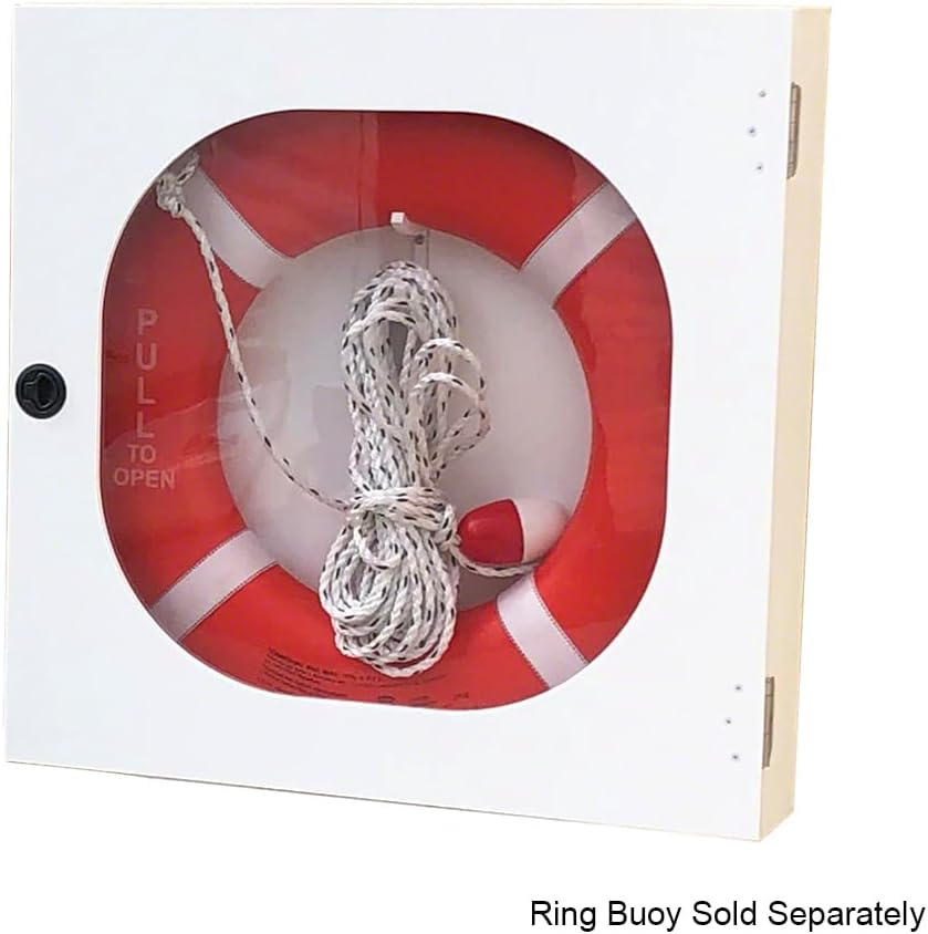 This highly durable Safety Station Cabinet is capable of housings a 24" ring buoy (NOT Included) 60 foot emergency heaving line with foot anchor, both of which can be easily removed in case of an emergency from the pre-installed hook inside. The cabinet has an unbreakable clear polycarbonate door designed to make the buoy easily identifiable in an emergency. The cabinet is designed from a tough white Marine-Grade HDPE plastic and will provide years of protection for your life-saving equipment keeping it in new condition. This unit can also be easily hung on a wall or fence with your own hardware. Ring buoy cabinets play a critical role in ensuring the safety of individuals who are near bodies of water in the event of a water-related emergency. Ring buoy cabinets are also required by law in many areas, such as in public pools and at beaches. It is essential that these cabinets are regularly checked and maintained to ensure that they are fully stocked and ready for use in the event of an emergency. Failure to meet these legal requirements can result in fines or legal consequences.