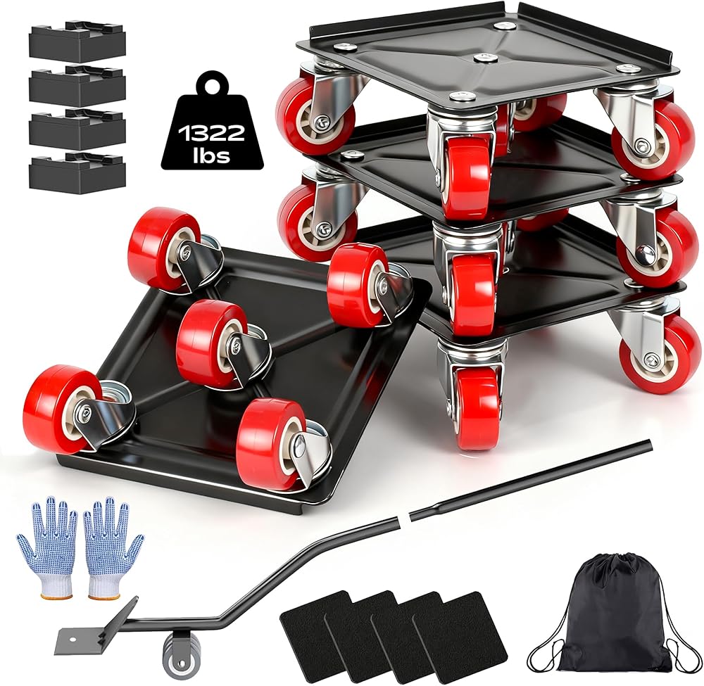 مجموعة الملحقات الكاملة: تتضمن مجموعة الأثاث المطورة أربع دمى متحركة مقاس 5.3 × 5.3 بوصة، وعتلة متينة، وأربع كتل مرتفعة الارتفاع، وأربع وسادات غير قابلة للانزلاق، وزوج من قفازات الأمان، وحقيبة تخزين مريحة برباط. ضع منزلقات الأثاث ذات العجلات أسفل القطعة بعد رفعها للأعلى، وكرر ذلك لجميع الزوايا، ثم ادفع بثبات لنقله دون عناء.