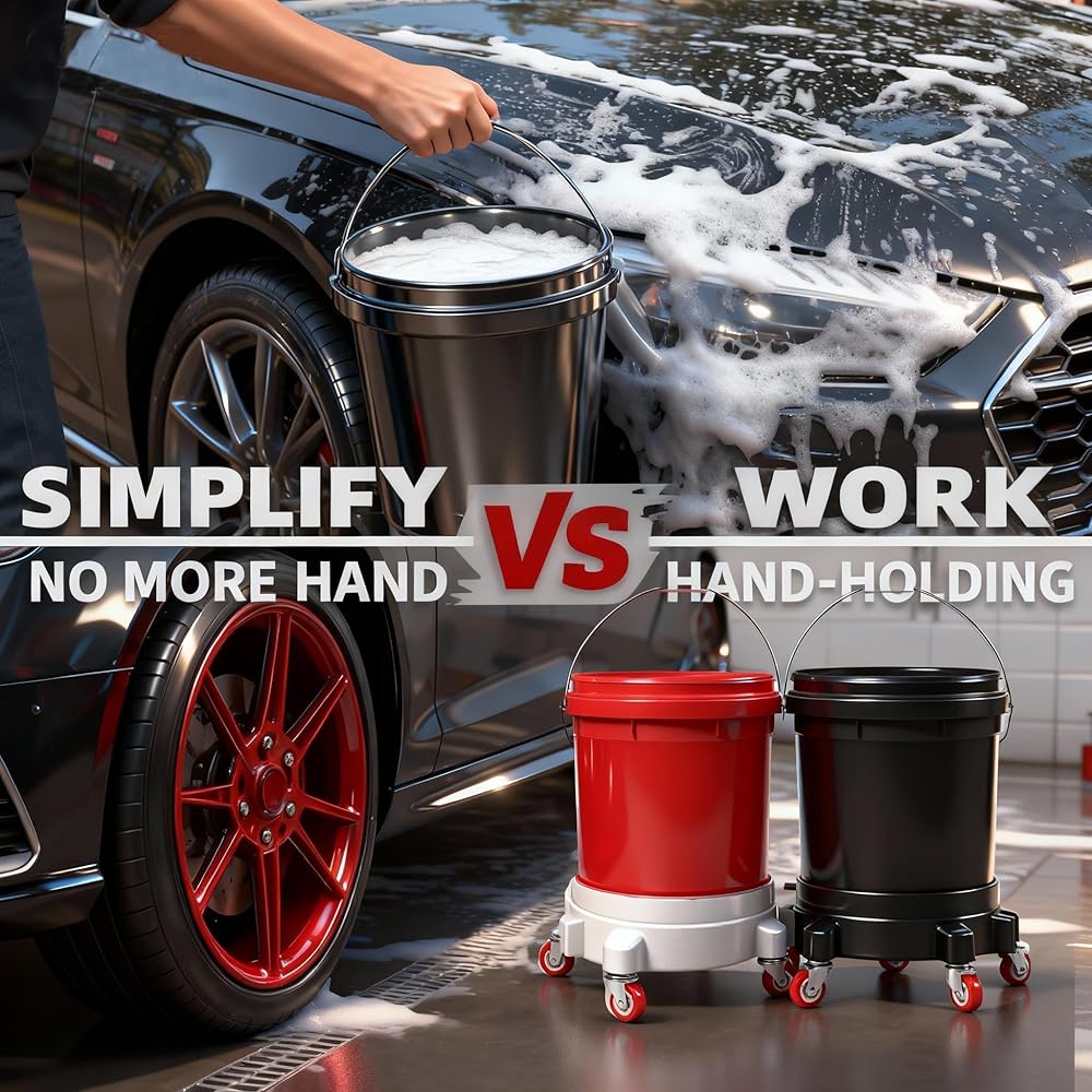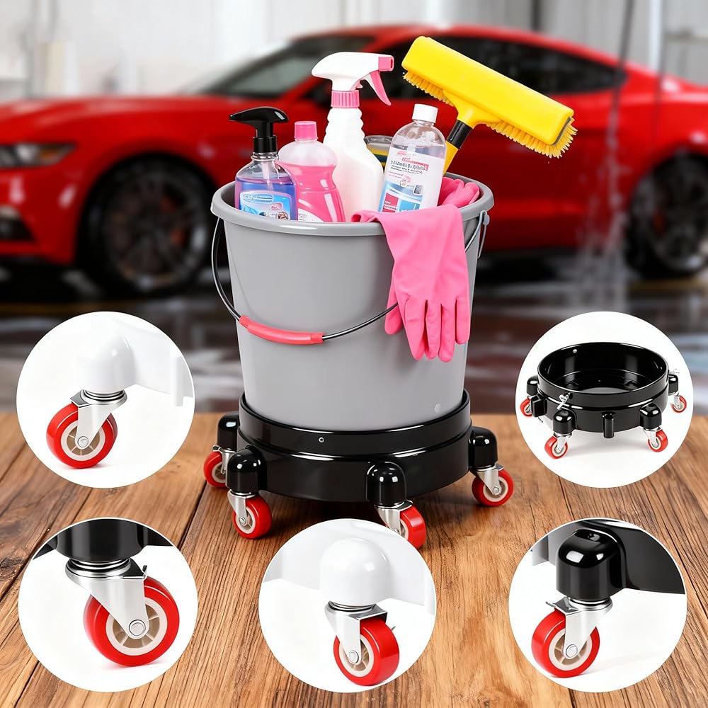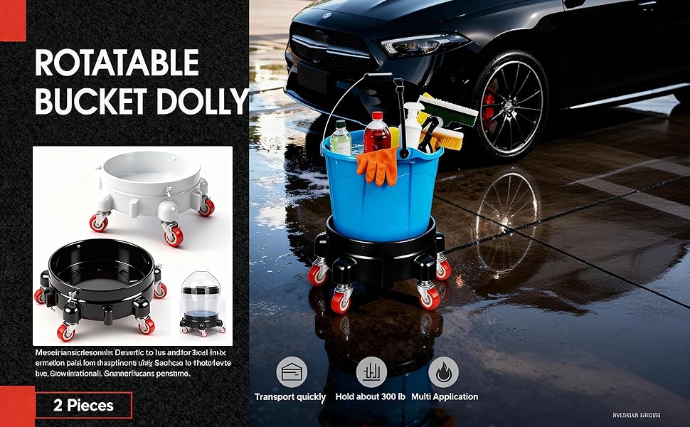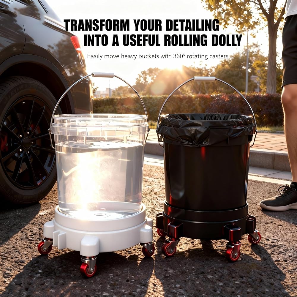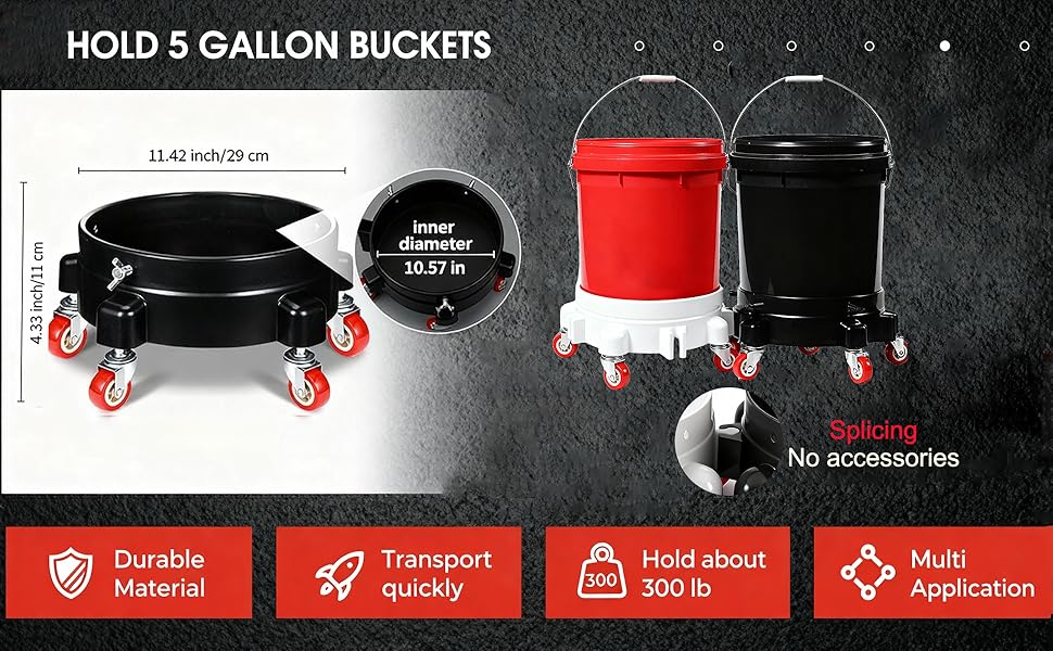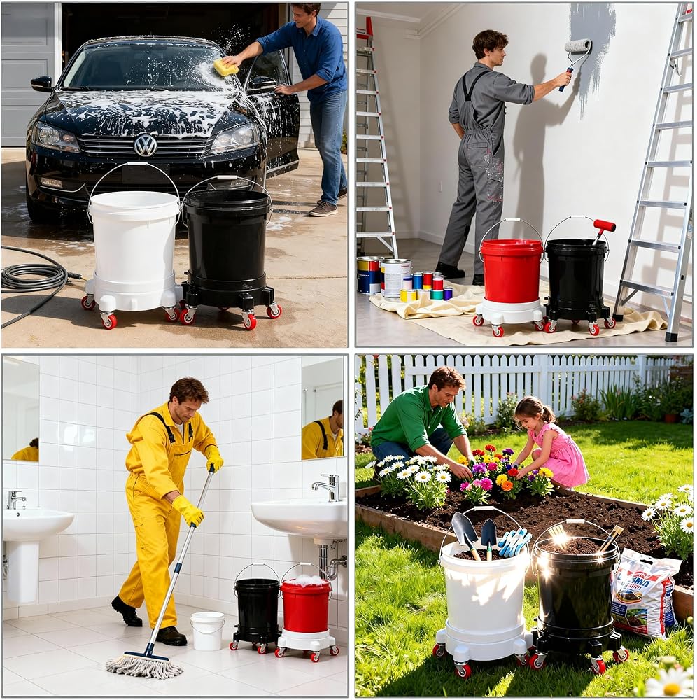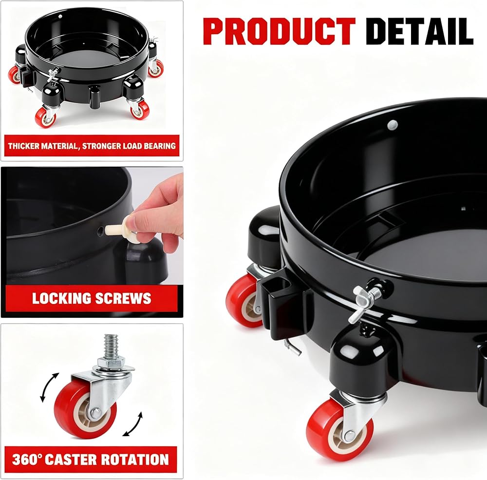 【تعزيز الكفاءة】قل وداعًا للانحناء لرفع الأحمال الثقيلة وحماية ظهرك. تحل دوللي الدلو المتداول محل رفع الدلاء الثقيلة - مما يوفر الطاقة أثناء جلسات العناية الطويلة بالسيارة أو ماراثونات البستنة أو التحولات الصناعية. إنها ترقية عملية لأي شخص سئم من نقل دلاء سعة 5 جالون.