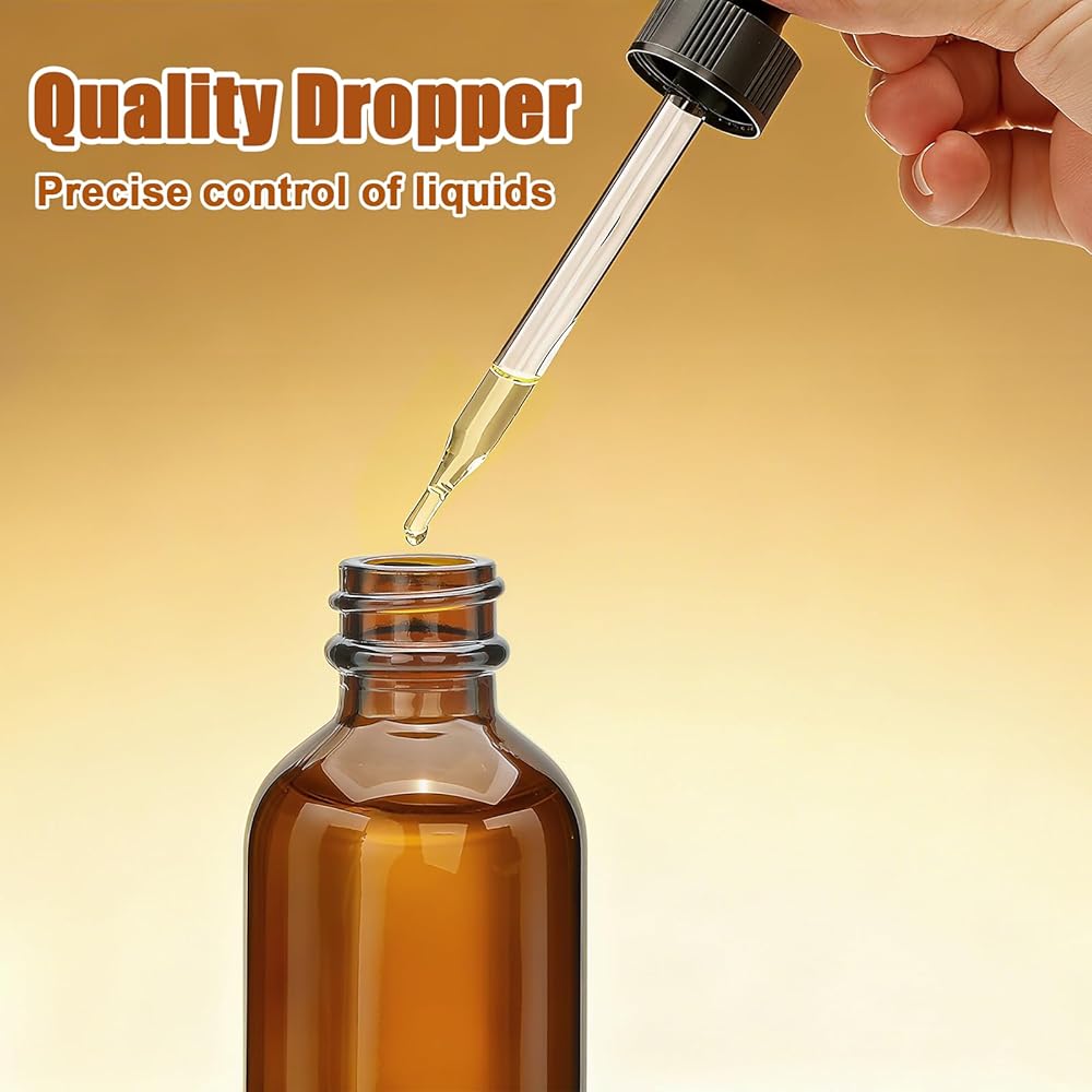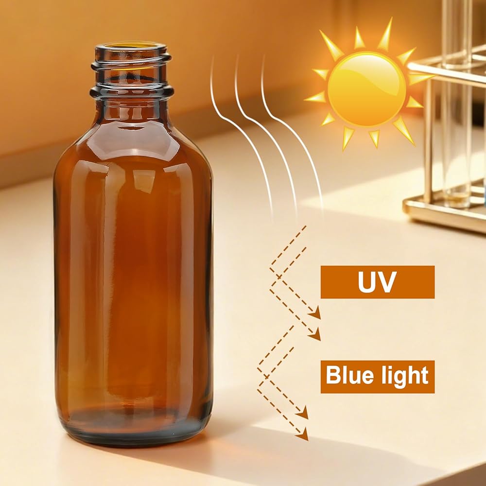 الحماية من الأشعة فوق البنفسجية: زجاجات القطارة الكهرمانية بوزن 2oz محمية من الضوء ويمكنها مقاومة أشعة الشمس بشكل فعال، مما يطيل عمر صلاحية المنتجات الحساسة للضوء.