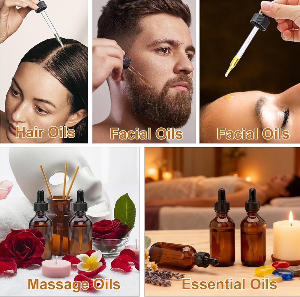 استخدامات متعددة: زجاجات القطارة سعة 2 أونصة هي زجاجات مثالية للصحة والعناية الشخصية والجمال. إنها مثالية لتخزين وتوزيع الزيوت العطرية والكولونيا ومستحضرات التجميل وزيوت العطور وزيوت اللحية وزيوت الشعر وزيوت العناية بالبشرة وزيوت التدليك والصبغات والمزيد.