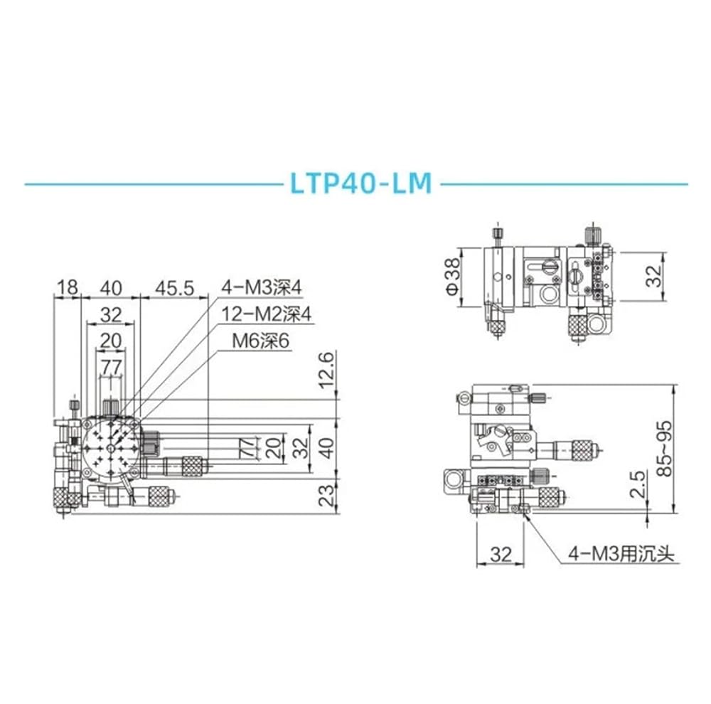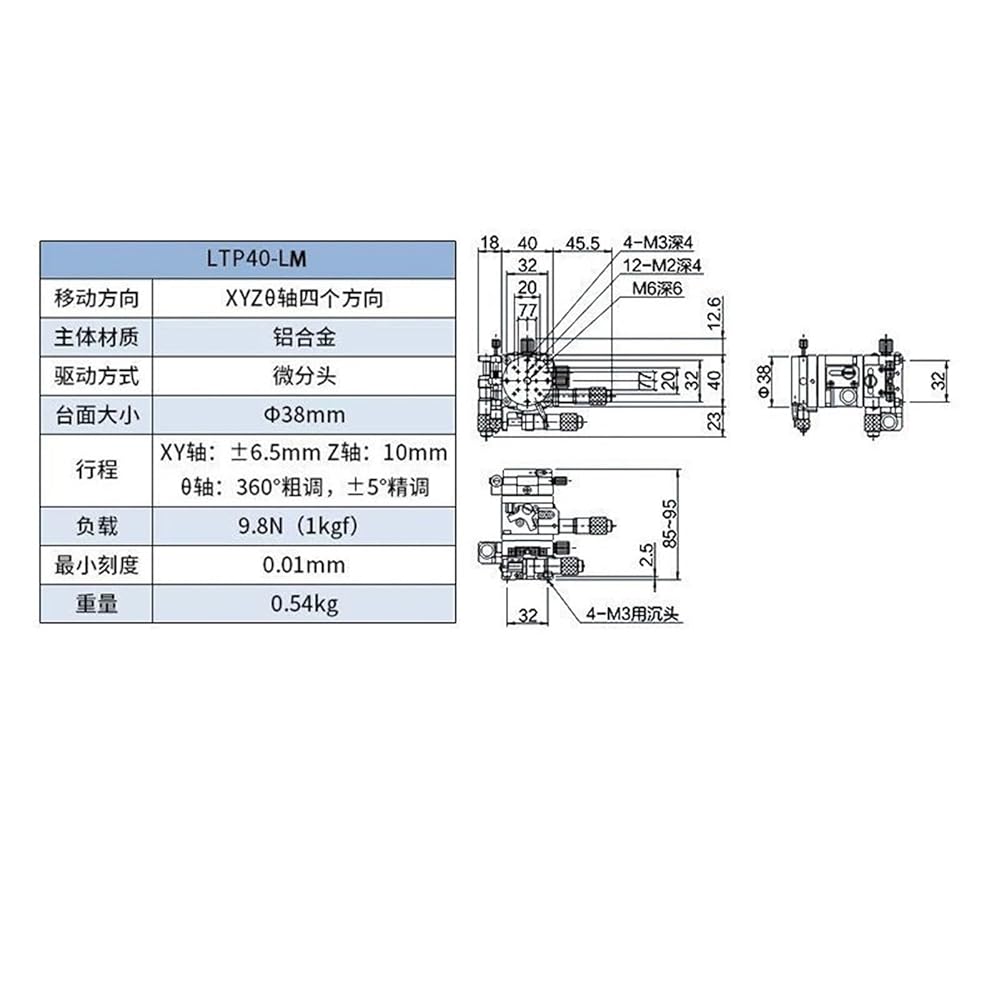4 محور V-نوع منصة الضبط الدقيق منصة خطية يدوية XYZR محور 40*40 مللي متر LTP40-LM تحمل تعديل انزلاق الجدول 9.8N