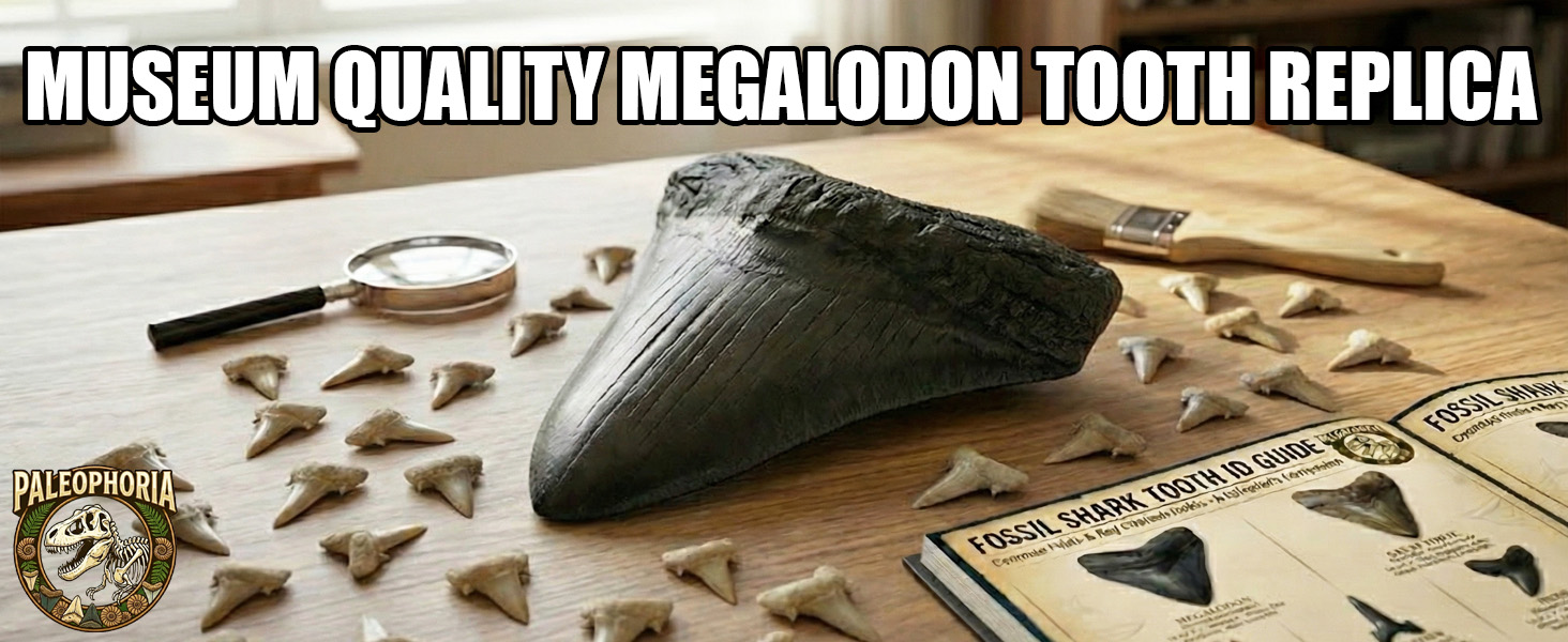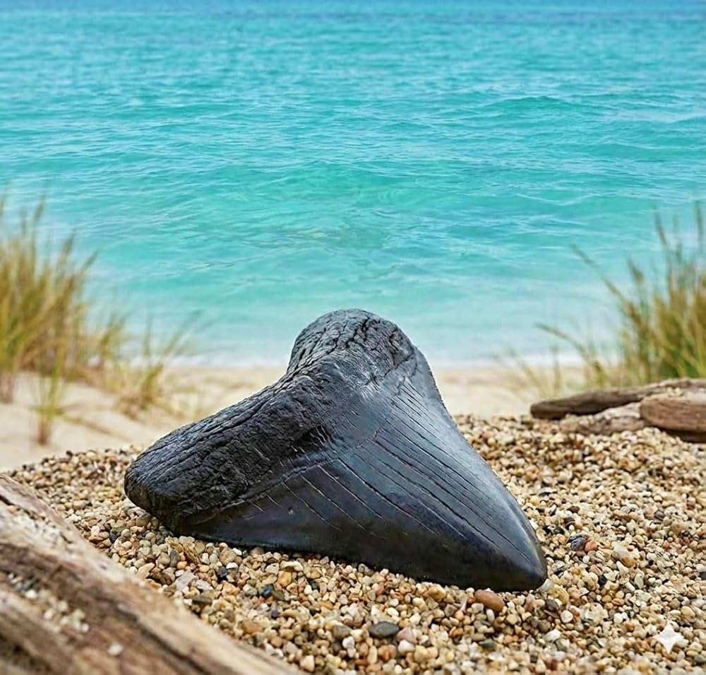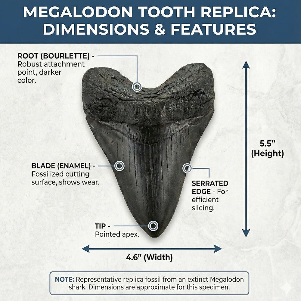 نسخة طبق الأصل من أسنان ميغالودون بتفاصيل مذهلة - نسخة مطابقة لأسنان سمك القرش ميجالودون بجودة المتاحف مقاس 4.5 بوصة × 5.5 بوصة، مصممة من أحفورة حقيقية. يُظهر تسننات واقعية وملمس مينا وبنية جذرية - مثالي للعرض والمجموعات وعشاق باليو.