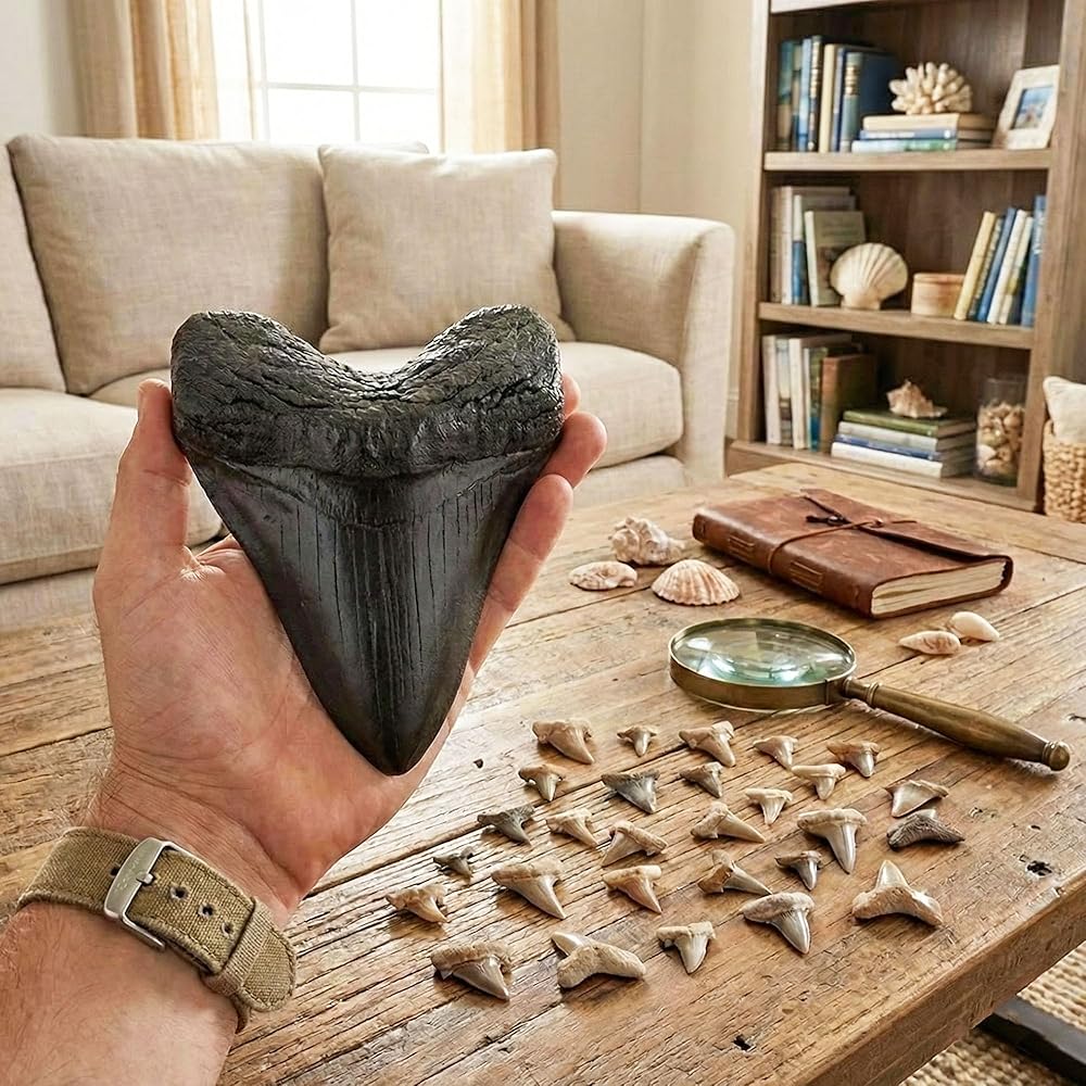 مثالية للعرض والمجموعات - اعرض أسنان ميج على الرف أو المكتب أو الدراسة. مثالية لهواة جمع الحفريات، ومحبي أسماك القرش، والمعلمين، والهواة، وأي شخص يحب ثلاثية الفصوص، والمخلوقات القديمة، ومقتنيات التاريخ الطبيعي.
