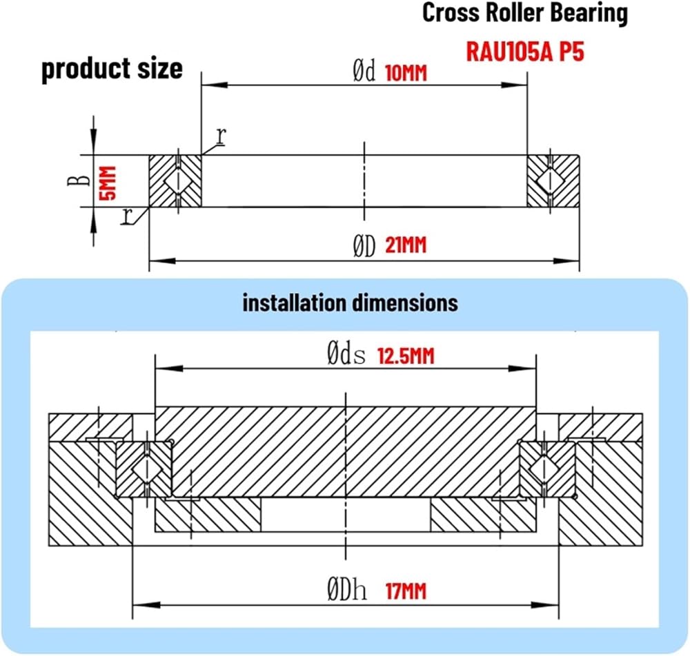 1PCS Cross Roller Bearing RAU105A P5 10X21X5MM Thickness 5MM
