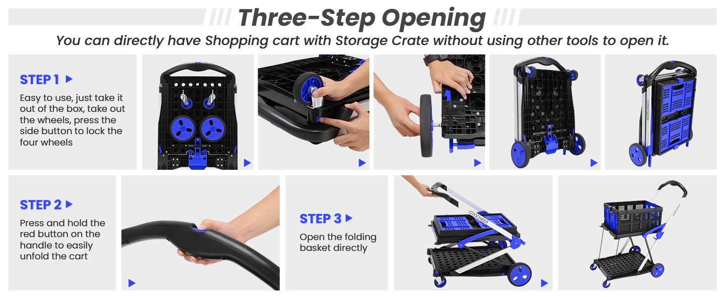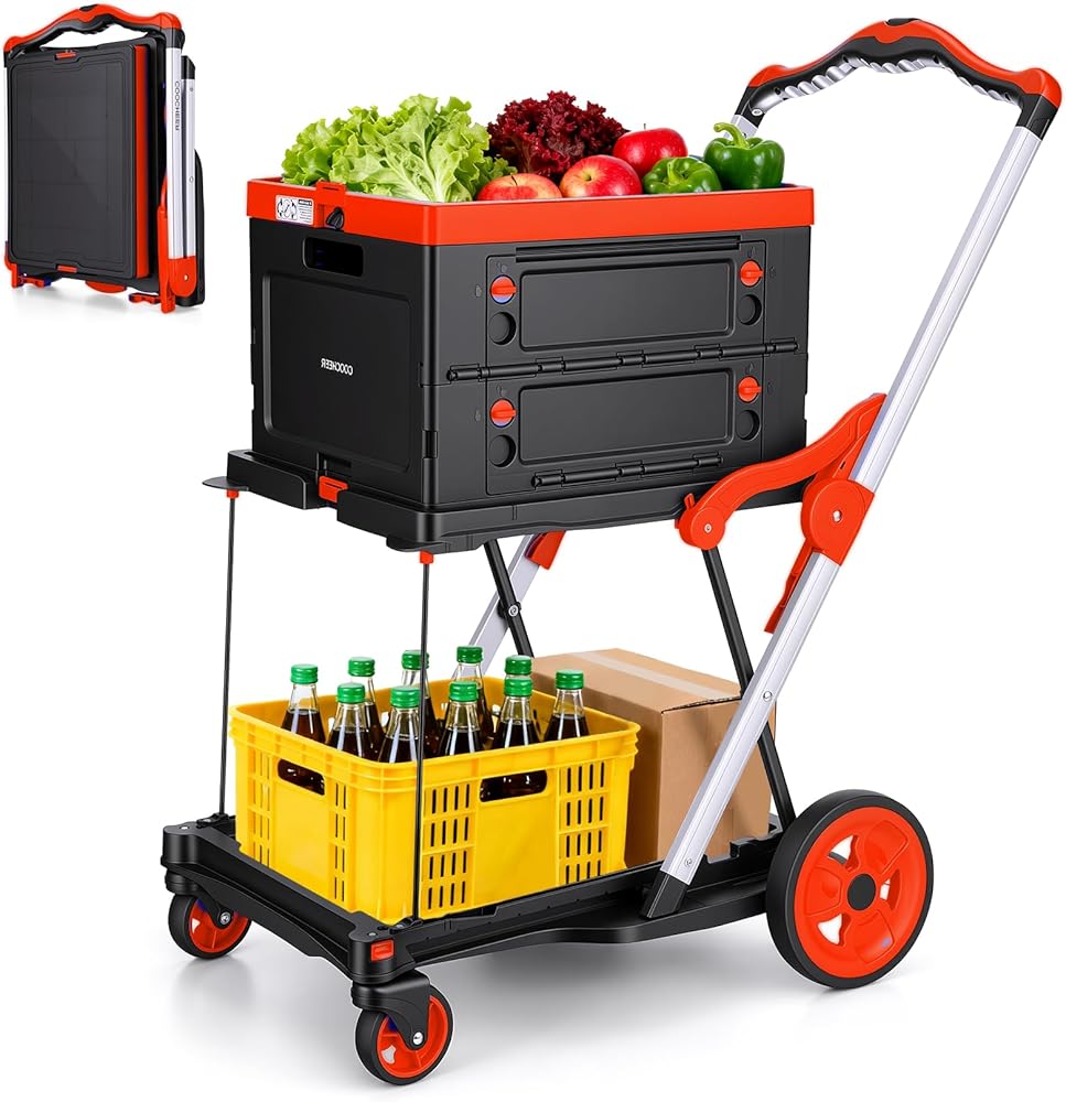 ✨تخزين مريح 🚘احمل العناصر الصغيرة بشكل آمن باستخدام صندوق التسوق العملي الخاص بك والمتضمن مع كل عربة متدحرجة! عند عدم الاستخدام، يمكن طي سلتك متعددة الاستخدامات للتخزين بدون مشاكل.