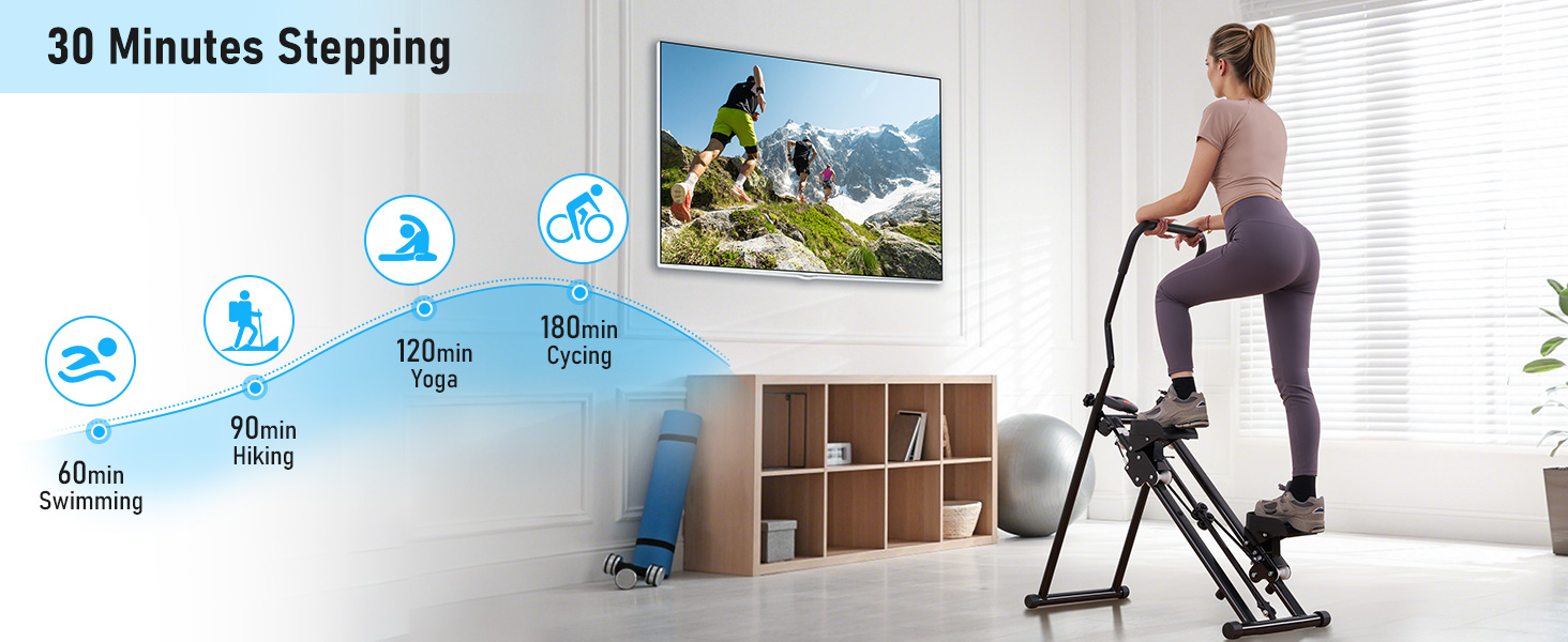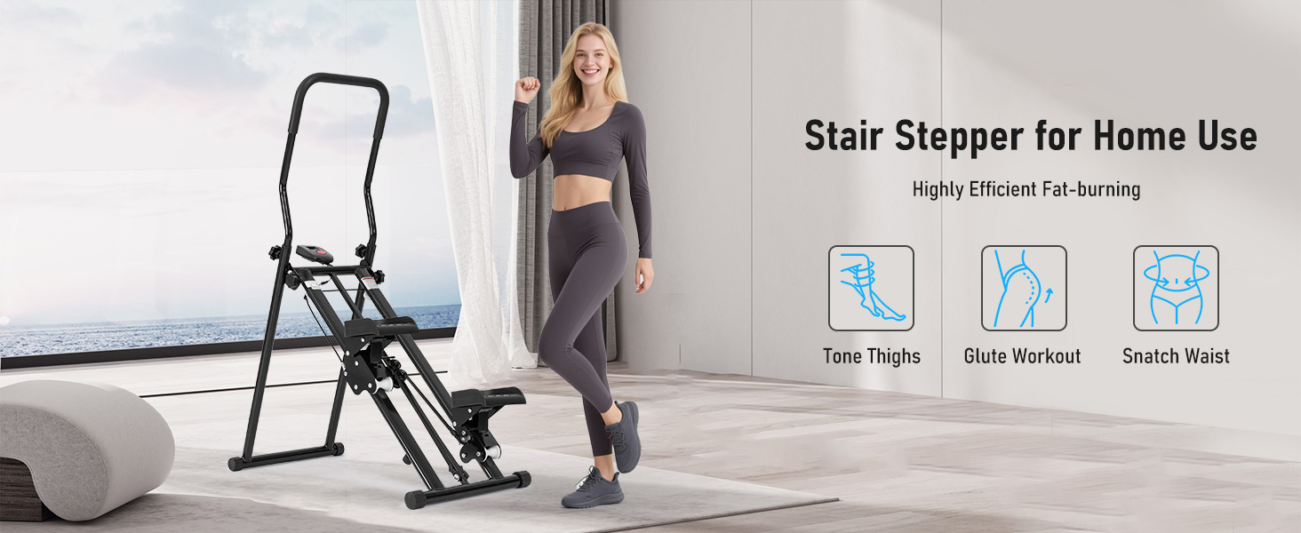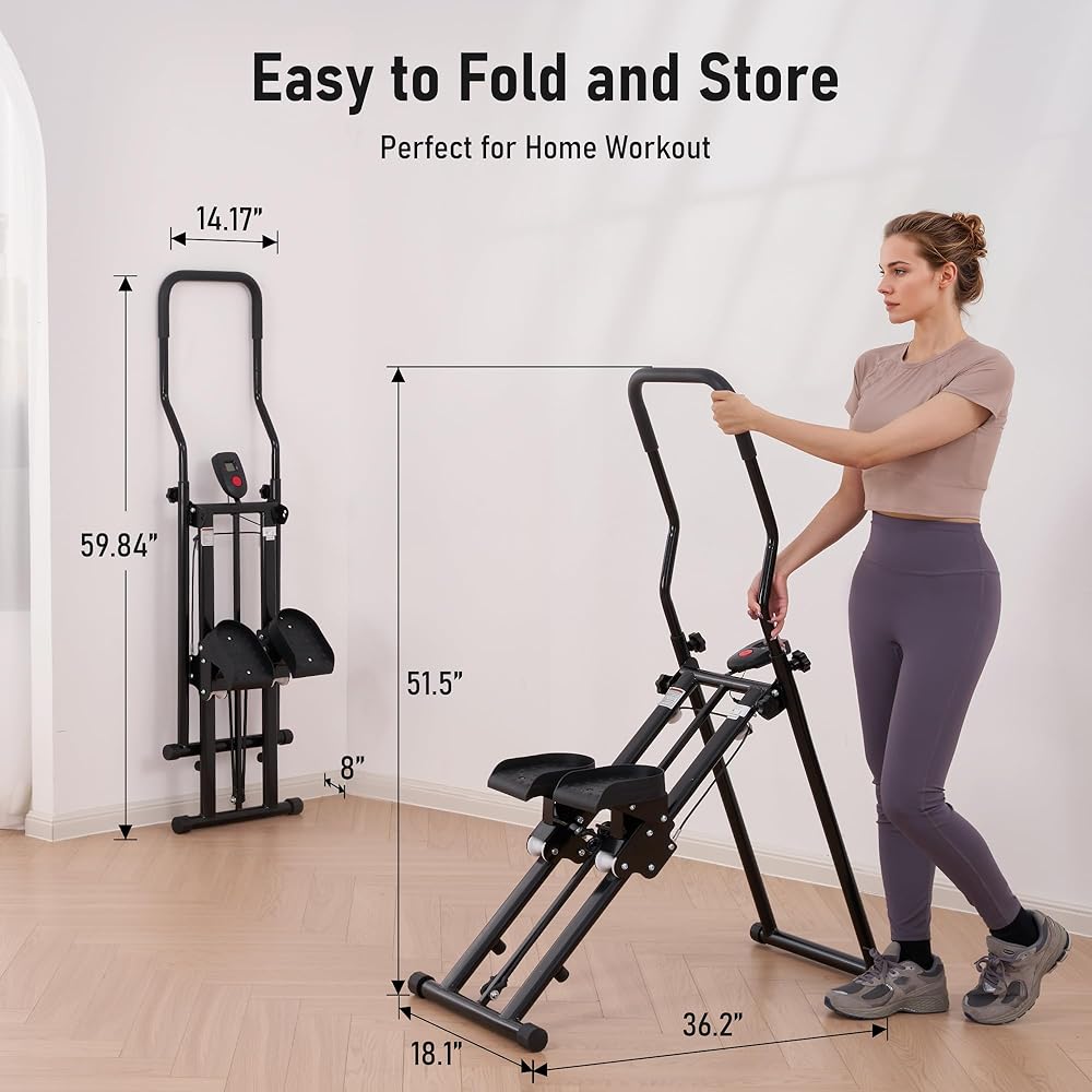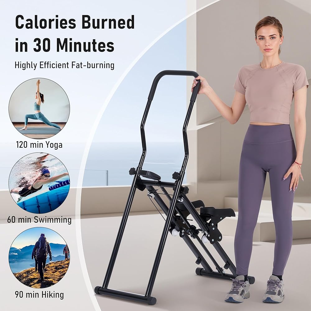 إطار ثابت وميزات مدروسة: تم تصميمه بهيكل مثلث قوي وسعة تحميل قصوى تصل إلى 220 رطلاً، وقد تم تصميم أداة الدرج هذه لتوفير دعم وأداء متوازنين أثناء الاستخدام. تشتمل أداة الدرج هذه أيضًا على أنابيب قدم غير قابلة للانزلاق، وحبل مطاطي مقاوم للاهتراء، وشاشة LCD بسيطة لتتبع وقتك وخطواتك والسعرات الحرارية. تم تصميم جهاز تسلق السلالم هذا للاستخدام طويل الأمد وهو مثالي لأولئك الذين يبحثون عن أداة تسلق سلم موثوقة للمنزل