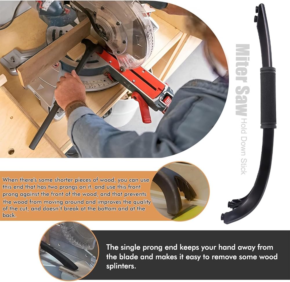 Featuring three not slip rubber feet for effective wood stabilization and pushing, an ergonomic grips design for comfortable handling that reduces hand fatigue, and a versatile ended structure with prongs for small pieces and a single prong for debris clearing.