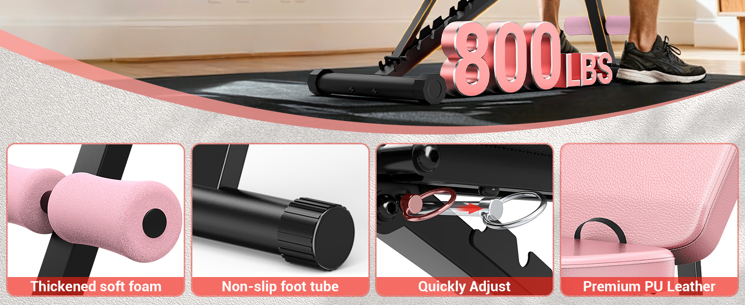 【جودة ممتازة】مقعد الوزن القابل للتعديل مصنوع من الفولاذ التجاري عالي التحمل مع إطار مثلث مزدوج لتحقيق أقصى قدر من الثبات والأمان تحت وزن يصل إلى 800 رطل - مما يسمح لك بالتركيز على تمرينك بدون قلق.