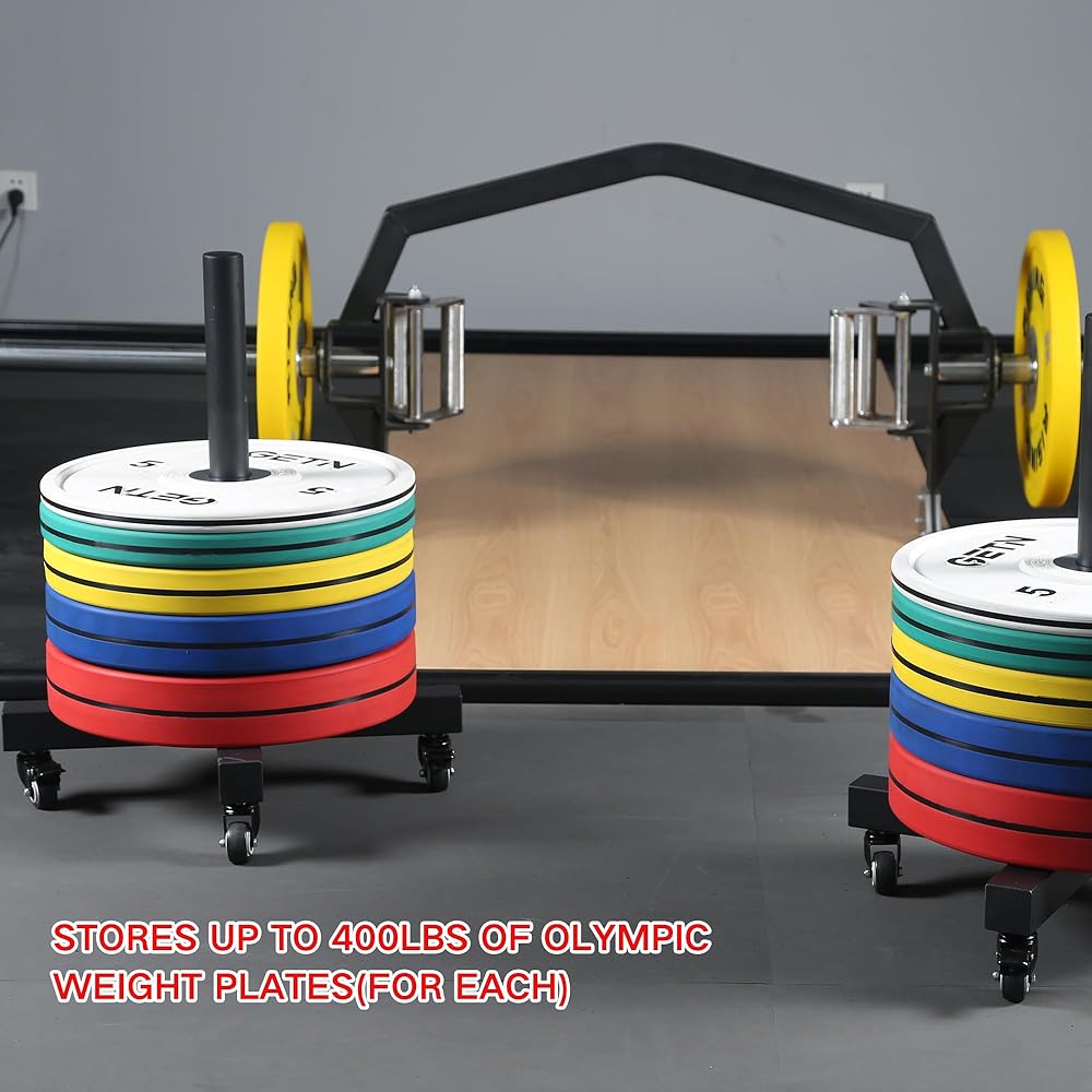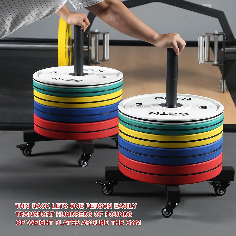 رف لوحة الوزن الأولمبي المتحرك المحدث من ZUKAM مع عجلة لتخزين وزن الألواح الممتصة للصدمات مقاس 2 بوصة، ويخزن ما يصل إلى 800 رطل من لوحة الوزن الأولمبي، يباع في أزواج