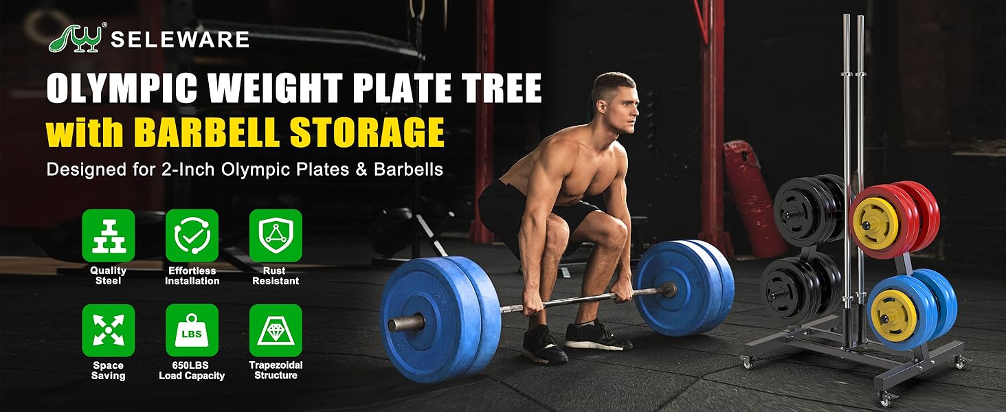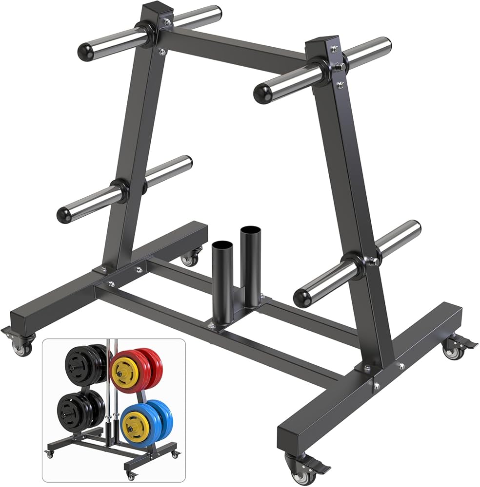 【All-in-One Storage Solution】Organize Plates & Barbells with Ease Stop the gym clutter! This versatile storage rack efficiently holds all your 2-inch Olympic plates and barbells. It features 8 dedicated weight plate posts and 2 sturdy barbell holders, keeping your home gym or commercial fitness center tidy and safe from tripping hazards. Everything has its place, maximizing your workout space and efficiency.