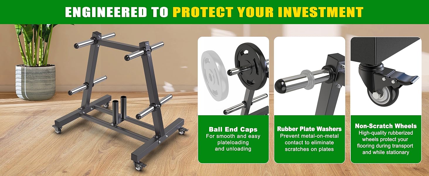 【Scratch-Free Plate Protection & Easy Access】 We care about your gear and your space. Each plate post has a ball end cap for smooth plate loading/unloading, and an internal plate washer to prevent scratches on your plates.
