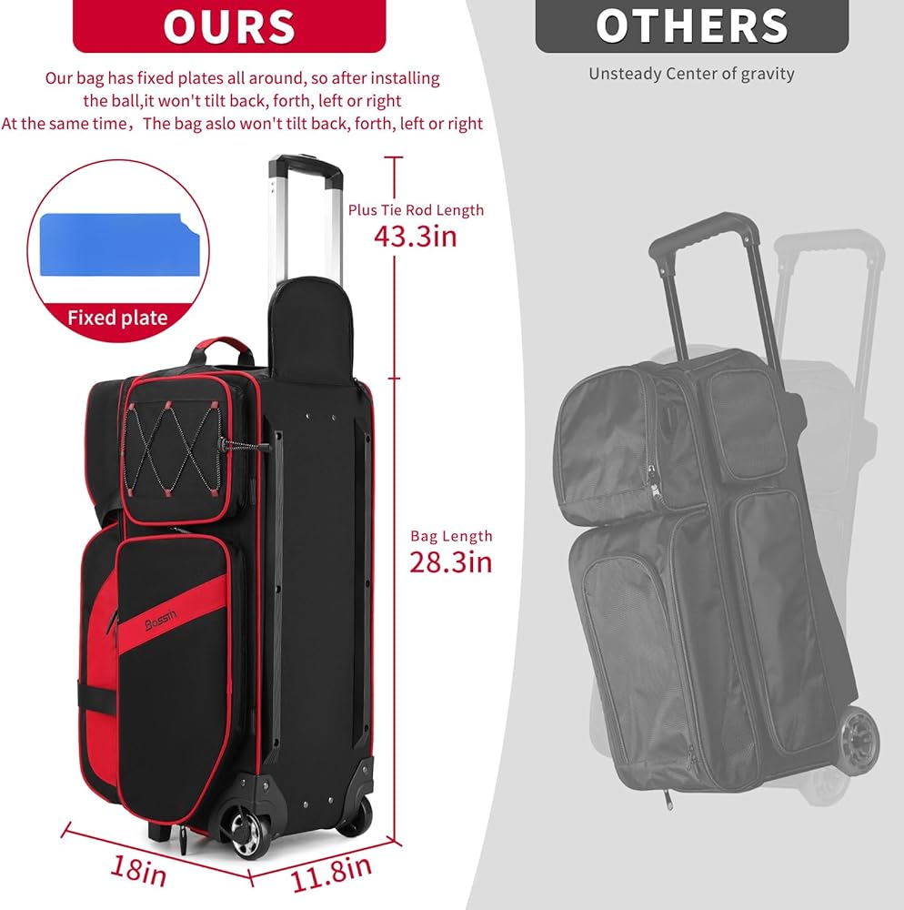 【43.3-inch Retractable Handle】The retractable handle of this 3 ball bowling bag can extend to 43.3 inches high from the ground, which is suitable for people of different ages and shapes. at the same time, the telescopic handle is sturdy enough , Don't worry about it will break easily and damage your balls
