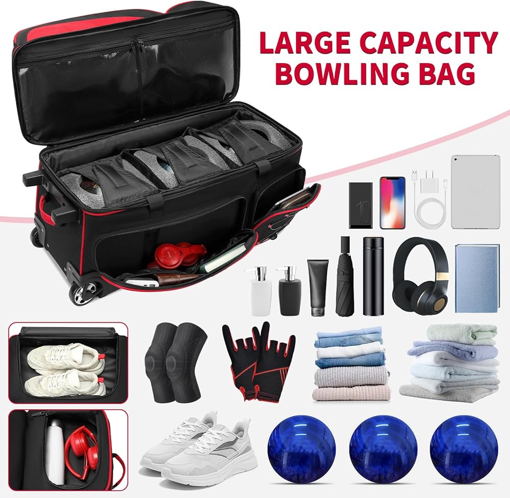 【Spacious Independent Storage Pockets】The top compartment of bowling balls bag, featuring multiple accessory pockets can accommodate a pair of bowling shoes up to size 16. By utilizing this compartment, you can keep your dirty bowling shoes separate from other items, ensuring cleanliness. Additionally, there are four dedicated pockets for storing bowling accessories like a phone,ball cleaners, At the same time, there is a dry and wet separation pocket on the cover, which can better separate your dry and wet clothes