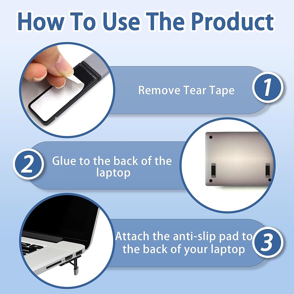 Foldable laptop raiser uses a self-adhesive design. It can be firmly attached to the device without tools, and installation and removal are very convenient.