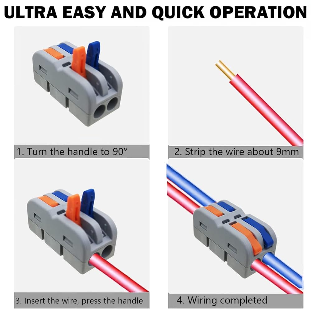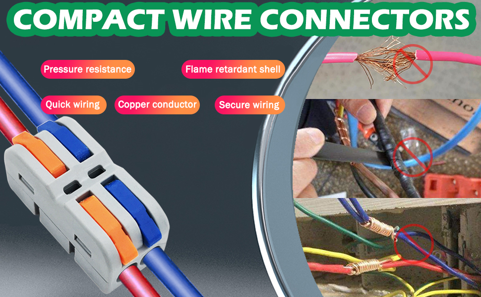 • ◔التطبيق: تعمل مع معظم قياسات الأسلاك المنزلية العادية، مثل مراوح السقف والمقابس والمفاتيح والسيارات والدراجات النارية والسفن ومكبرات الصوت والمصابيح والصناديق الكهربائية والثريات ومفاتيح الإضاءة وأدوات التحكم في المروحة وغير ذلك الكثير.