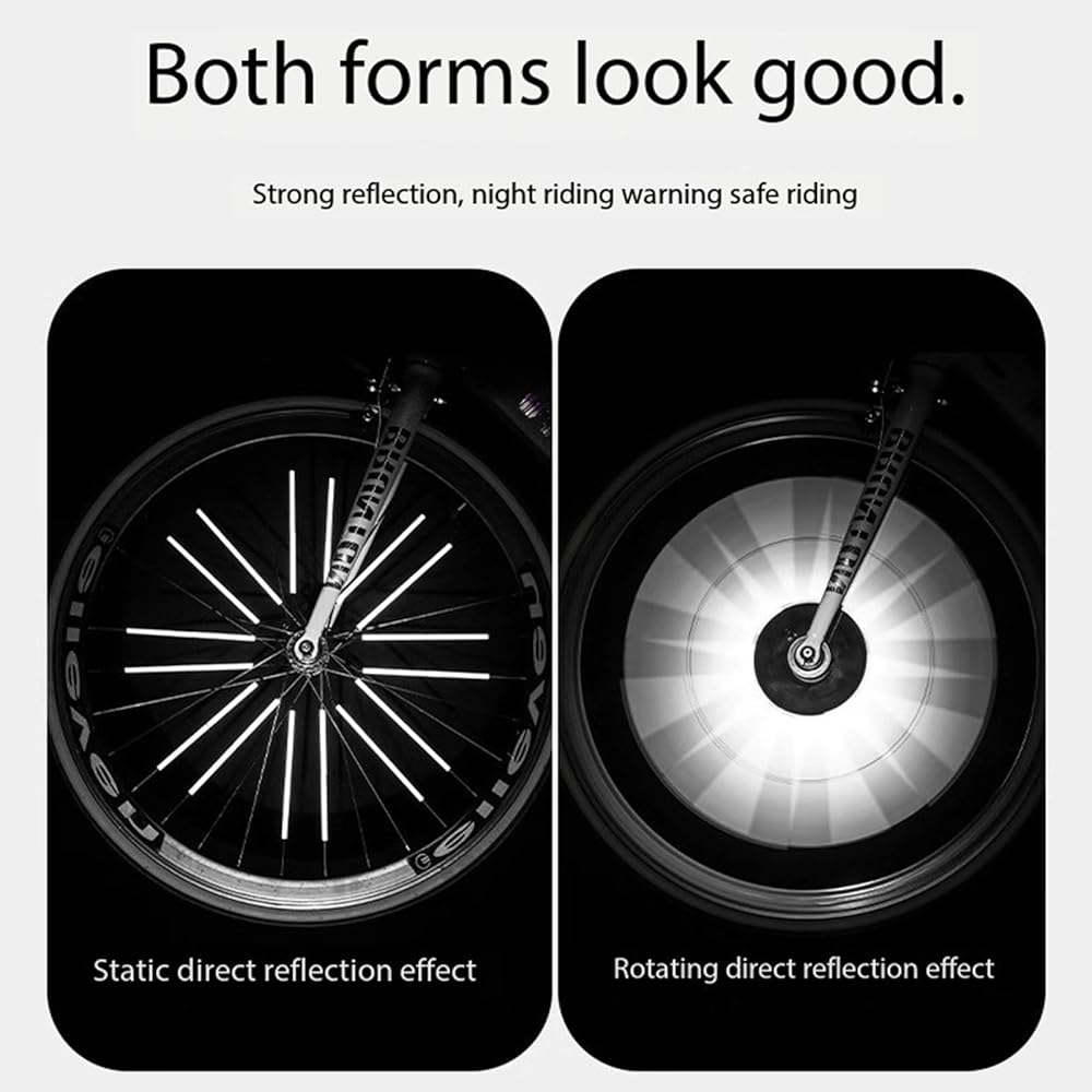Enhanced Visibility: During the day, our spoke covers blend seamlessly with your bike's spokes. However, at night, they reflect bright light, making sure that you're seen by everyone, significantly increasing your safety while cycling.