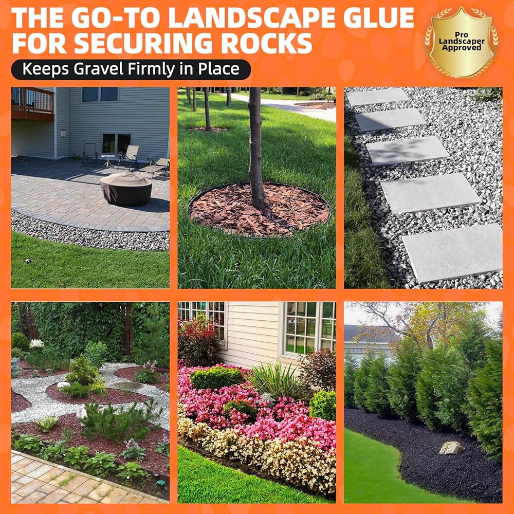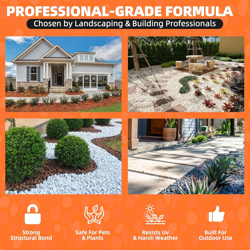 Professional-Grade Adhesion: Engineered with Grip Max bonding technology, this outdoor stone glue provides reliable adhesion to secure gravel, mulch, and stones in demanding landscaping conditions.