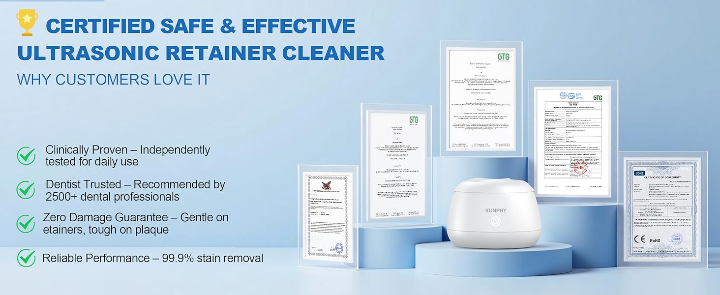 تنظيف ممتاز للمثبات: هل تبحث عن أفضل منظف للمثبتات؟ البيانات والتوصيات المنشورة من أطباء الأسنان من جميع أنحاء العالم تختار منظف الأسنان بالموجات فوق الصوتية للمثبتات.