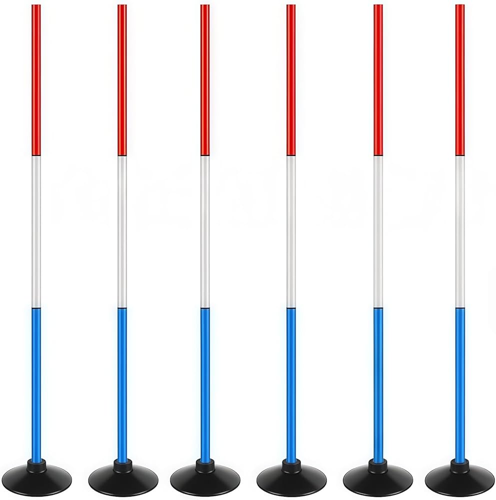 Train like a pro in your own space. This complete 6-pole kit elevates home, backyard, and academy drills (not for official AQHA/FEI competitions). The 2.2lb weighted bases improve stability to resist tipping during fast turns. Built with safety and visibility in mind, the poles are made from smooth, shatter-resistant plastic. The bold red, white, and blue blocks create a high-contrast visual aid for clearer obstacle recognition. Everything you need is included: 6 poles, 6 bases, connectors, and a storage bag for quick setup and compact portability. Ideal for horse & dog agility, soccer drills, and backyard fitness. For added stability in windy conditions, placing extra weight (e.g., a sandbag) on the base is recommended.