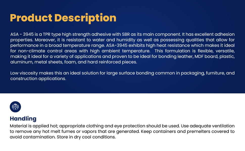 ASA ذوبان ساخن حساس للضغط عالي القوة لتجميع المنتج. الجلود، الخشب، البلاستيك، الألومنيوم، المعدن، الرغوة. مثالية لربط الأسطح الكبيرة | مقاومة للحرارة العالية. 35 رطلا