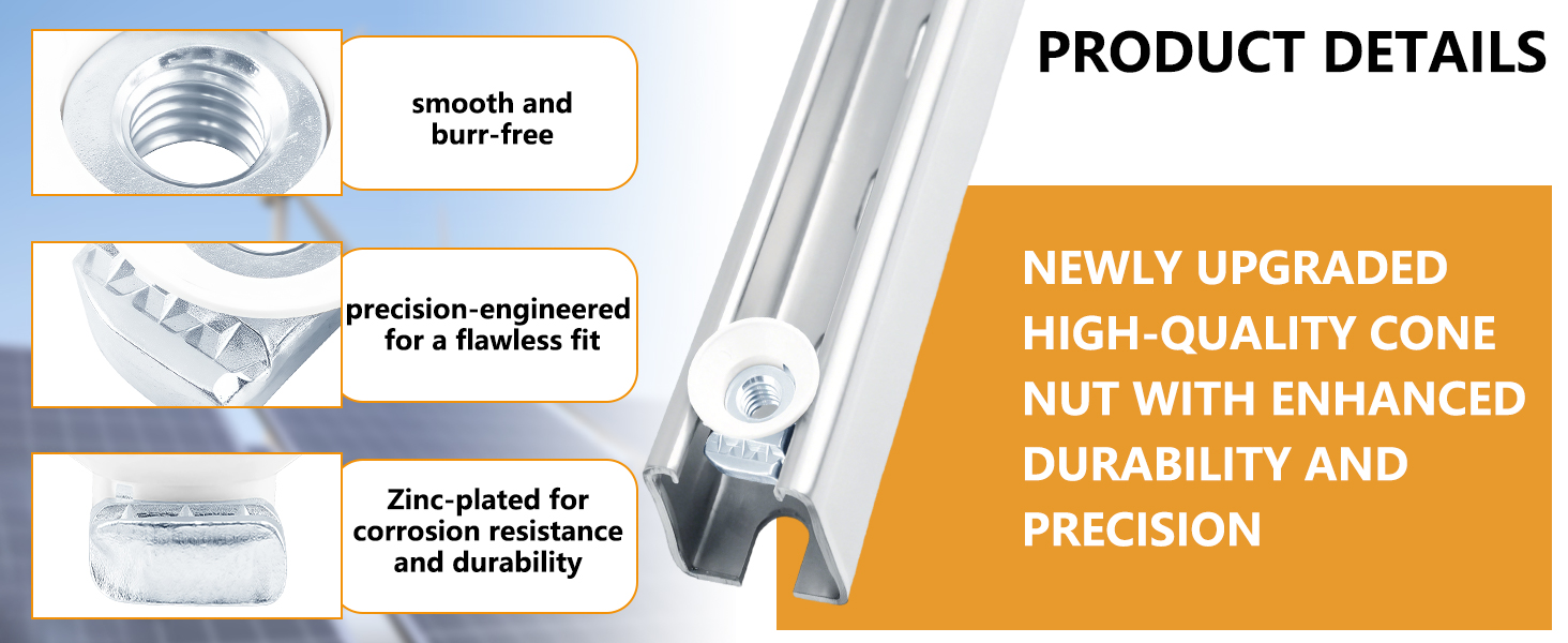 مقاومة معززة للصدأ والتآكل: يوفر الطلاء المجلفن كهربائيًا على هذه الصواميل المخروطية ذات القناة الدعامية حماية فائقة وطويلة الأمد ضد الصدأ، مما يجعلها مثالية للاستخدامات الداخلية والخارجية.