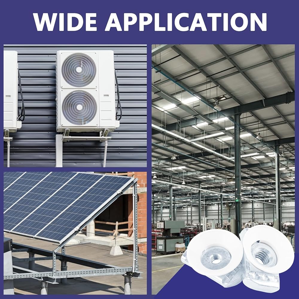 وصلة صلبة ومستقرة: يضمن التصميم المعزز لهذه الصواميل ذات القنوات الانضغاطية قفلًا آمنًا ومقاومًا للاهتزاز، مما يوفر ملاءمة ثابتة وموثوقة لأجهزة Unistrut الأساسية الخاصة بك