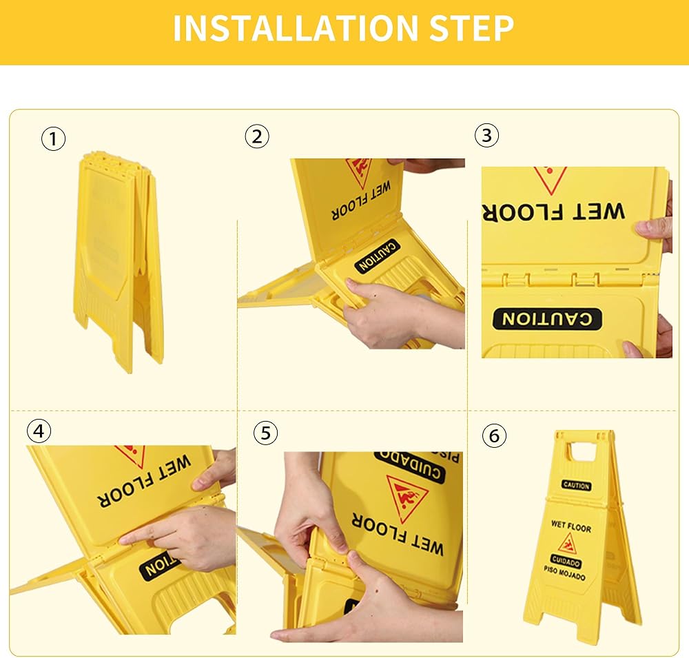 علامة تحذير للأرضيات المبللة: لافتة تحذير بلاستيكية صفراء ساطعة للأرضيات المبللة مقاس 60.96 سم مع أيقونة الشخص المتساقط، يمكن للأشخاص القراءة من مسافة بعيدة. مثالية للأرضيات، والمداخل، والممرات، والفنادق، والمدرسة، والمتجر. يلزم وجود علامات متعددة لكل مدخل للأرضية المبللة.