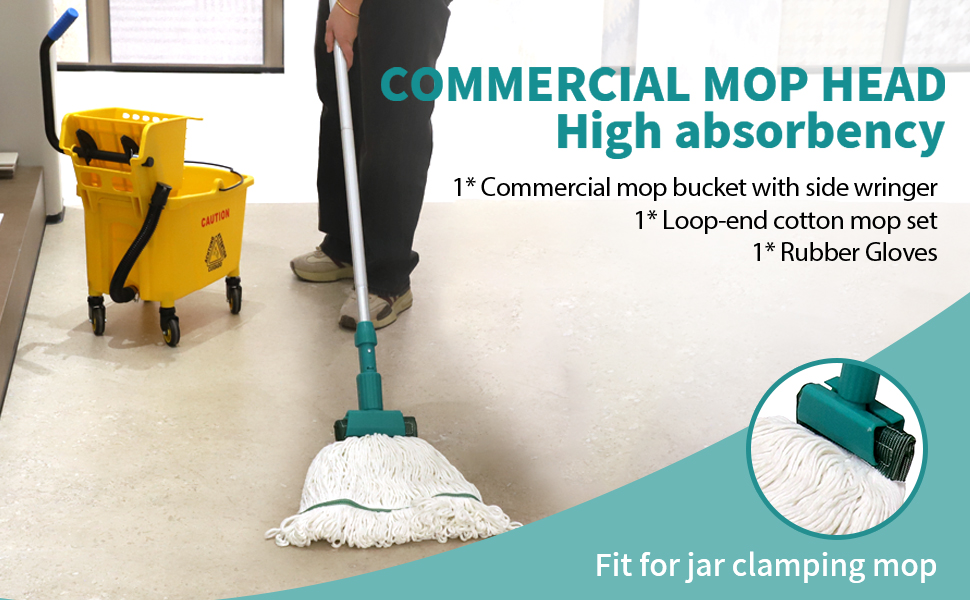 مشبك مقبض الممسحة على الحامل يحافظ على الممسحة في وضع مستقيم في الدلو؛ بما في ذلك 1 ممسحة تجارية + 1 قفازات مطاطية