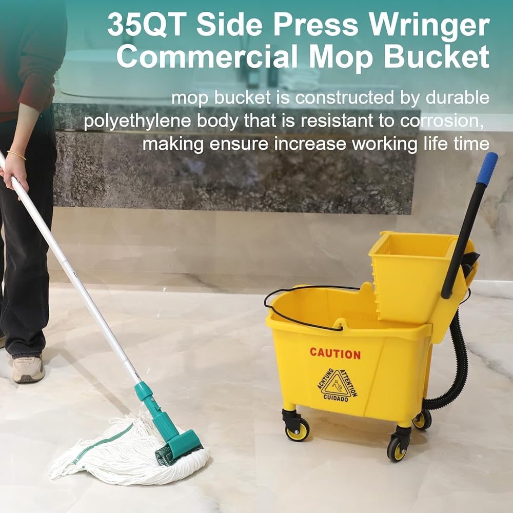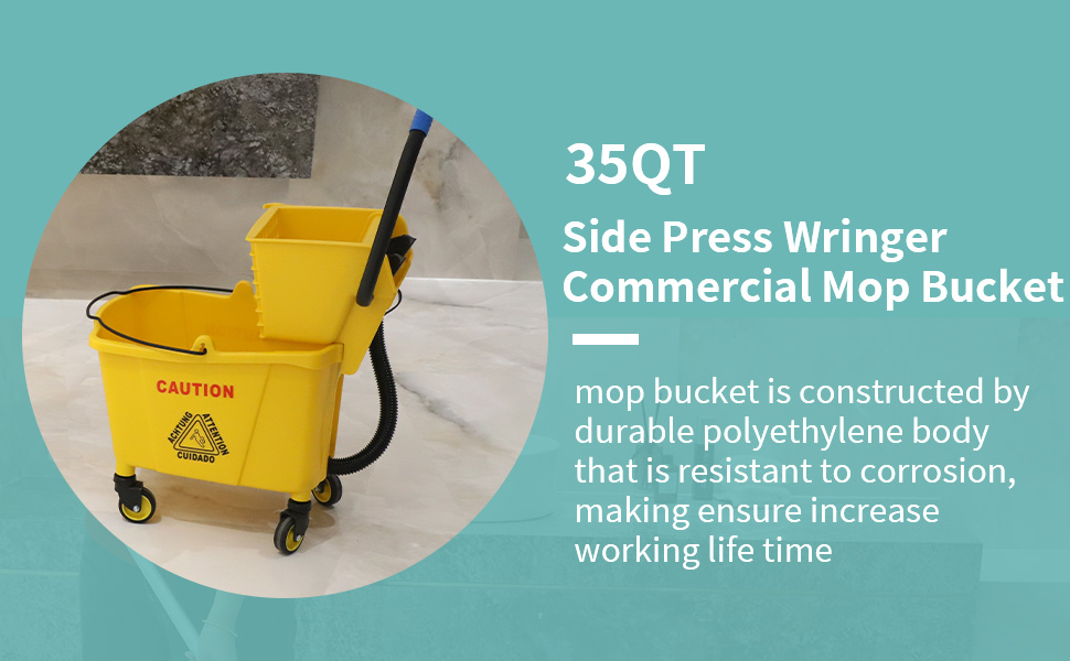دلو الممسحة: مصنوع من مادة البولي بروبيلين عالي القوة، هذا الدلو الممسحة بسعة 35 لترًا يقاوم التشقق والتآكل والأضرار الكيميائية. مصممة للاستخدام طويل الأمد في البيئات التجارية مثل المطاعم والمكاتب والمساحات الصناعية.